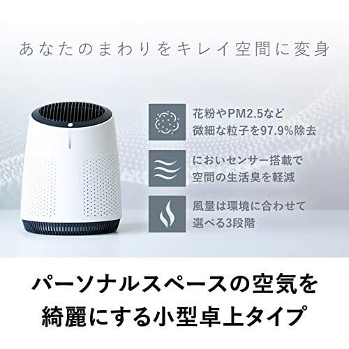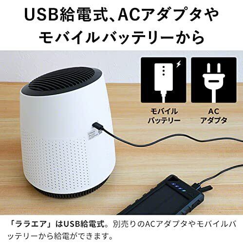Qurra(ララエア) 空気清浄機 小型 卓上 usb 給電 フィルター 式 風量 3段階 脱臭 生活臭 花粉 ホコリ PM2.5 お手入れ簡単 3R SYSTEMS ホワイト