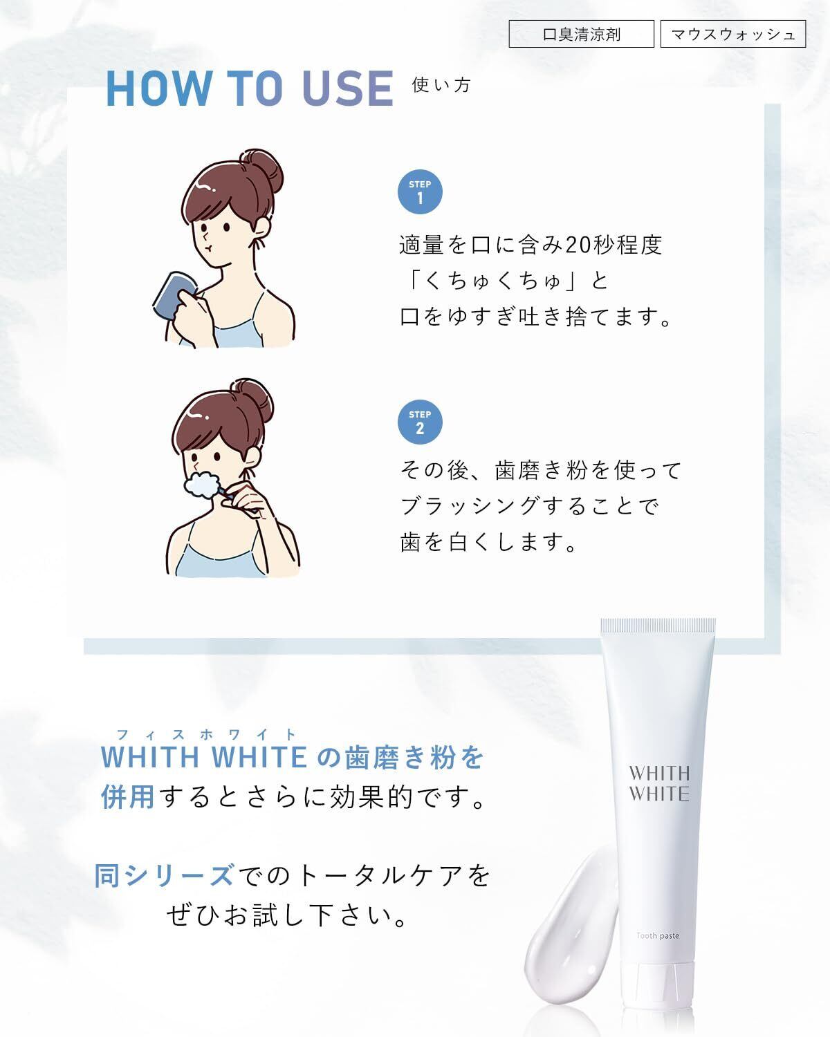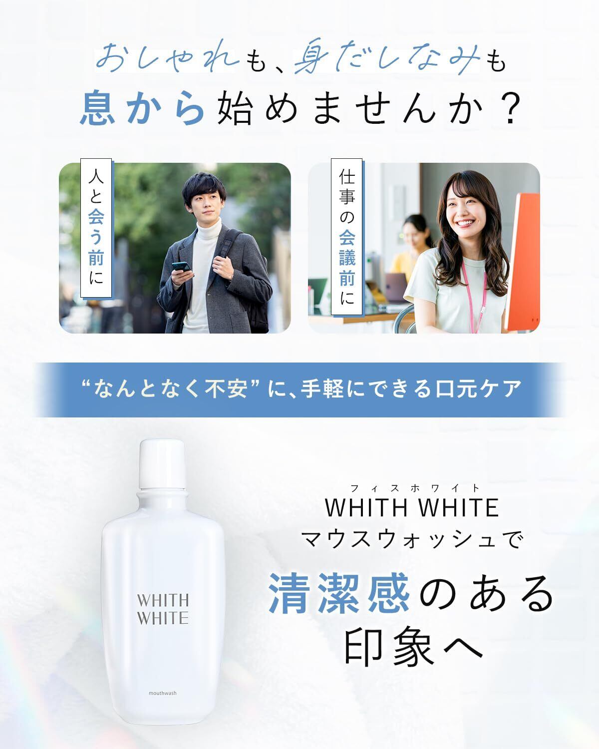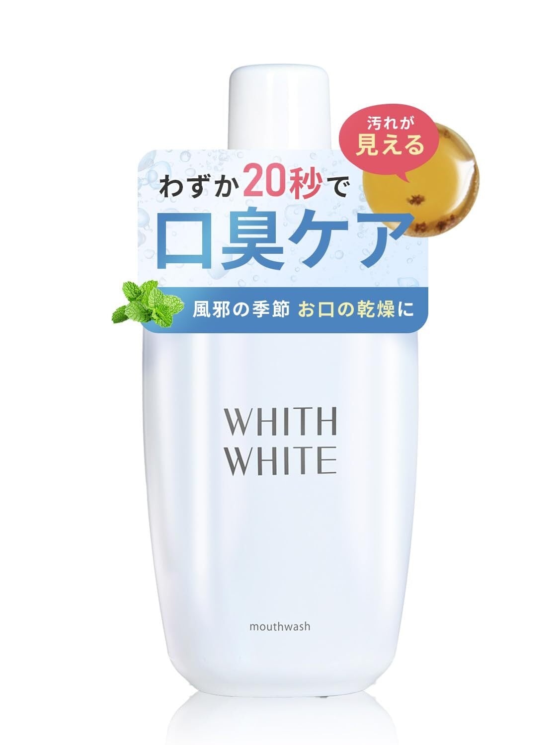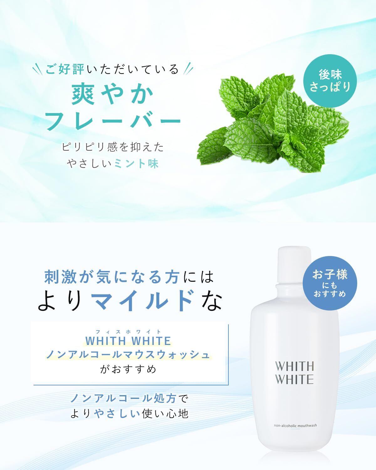 【落ちた汚れが見える】WHITH WHITE(フィス ホワイト) マウスウォッシュ [ 爽やかフレーバー ] 洗口液 低刺激 デンタルケア キット 清潔 口臭ケア 口臭300ml