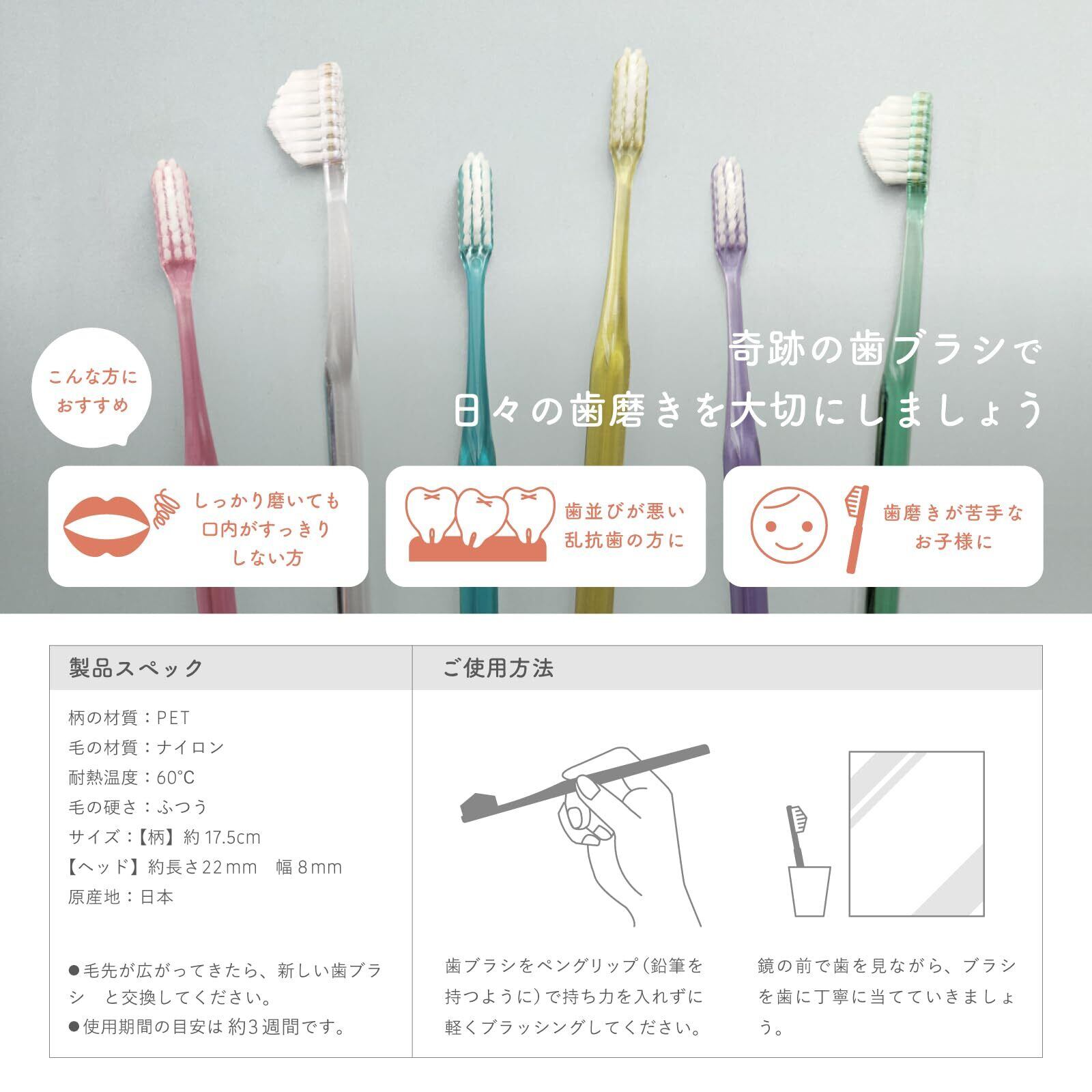 奇跡のオーラルケア 奇跡の歯ブラシ〈トライアングル〉 ふつう ピラミッド型 (クリアピンク(各3本)6本セット)