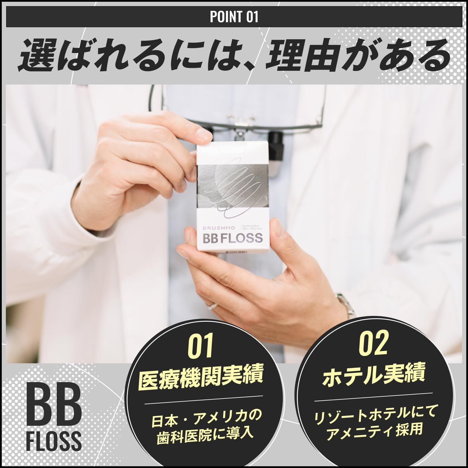 【東京都内の歯科医院にて取扱い開始】ブラシモ BBフロス ブラック デンタルフロス 50m 約100日分 オーラルケア 歯間フロス BB Floss 米国歯科医推奨 1個入
