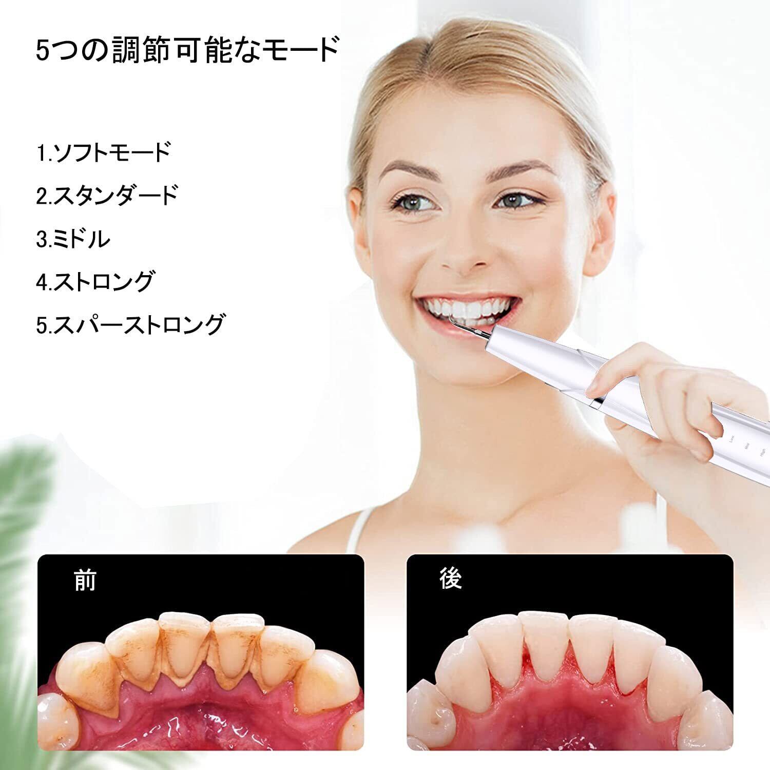 超音波歯クリーナー 口腔洗浄器 USB 充電式 携帯用歯清潔器 5モード調節可能 LEDライト クリーニングキット