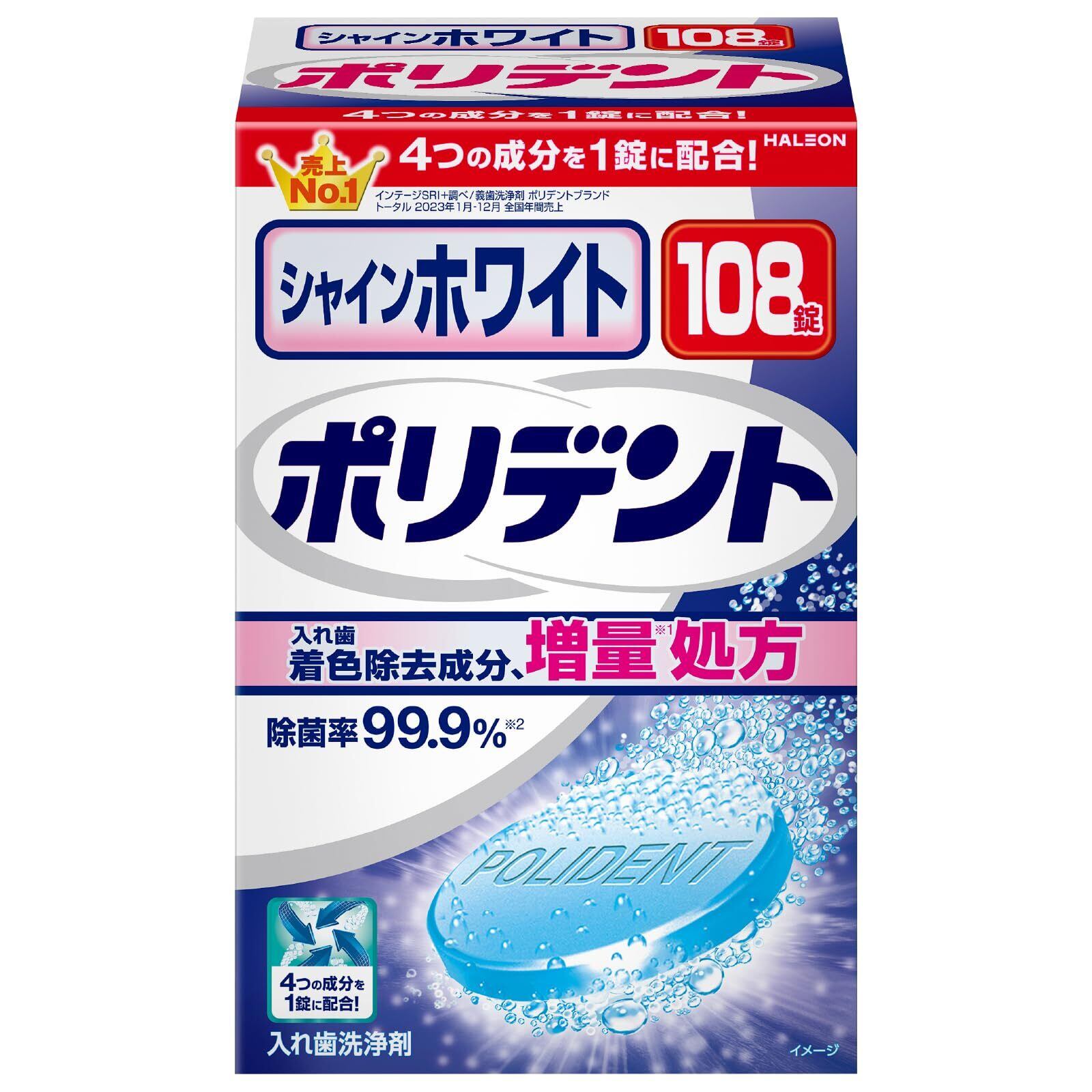 ポリデント シャインホワイト 入れ歯洗浄剤 着色除去 108錠 99.9%除菌