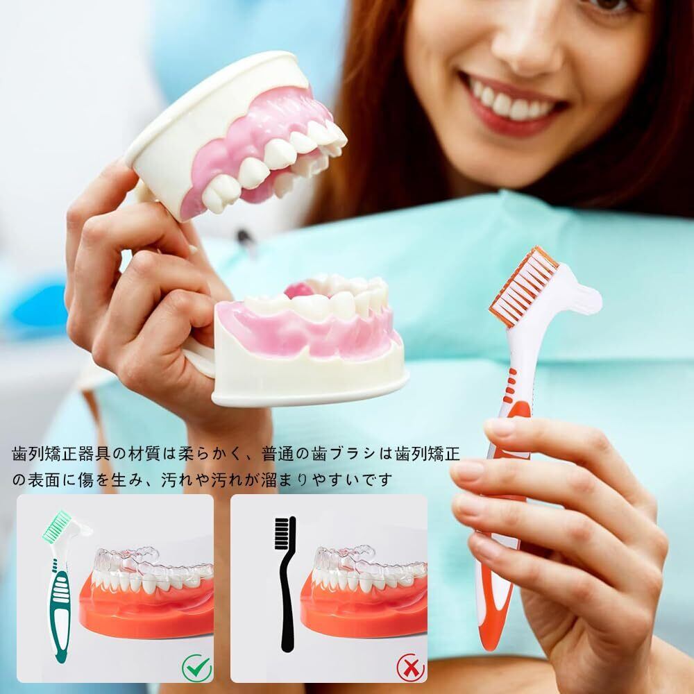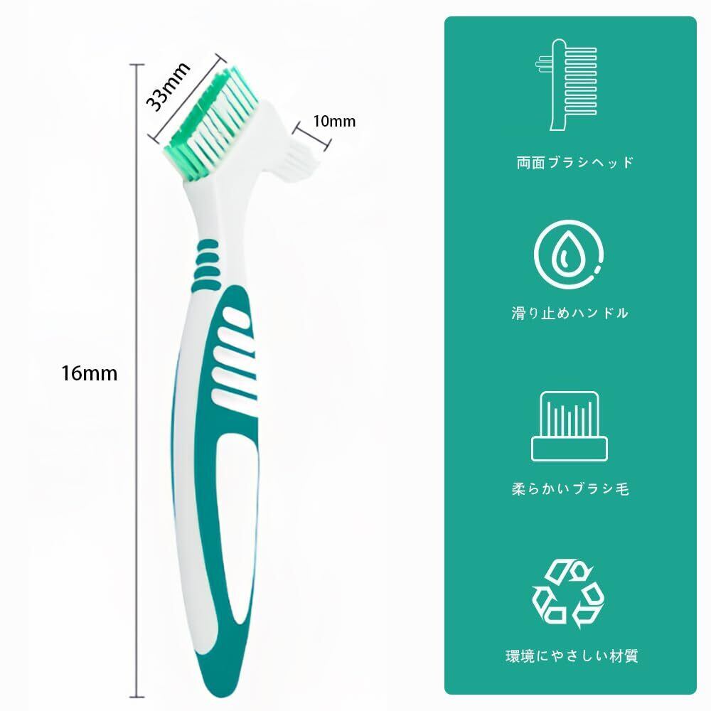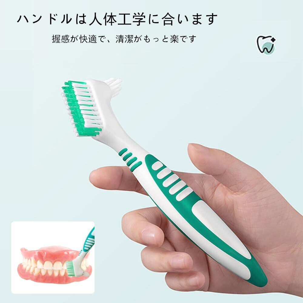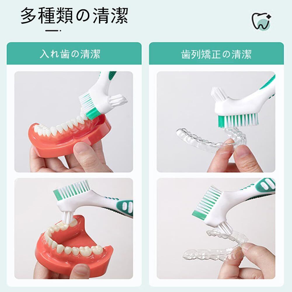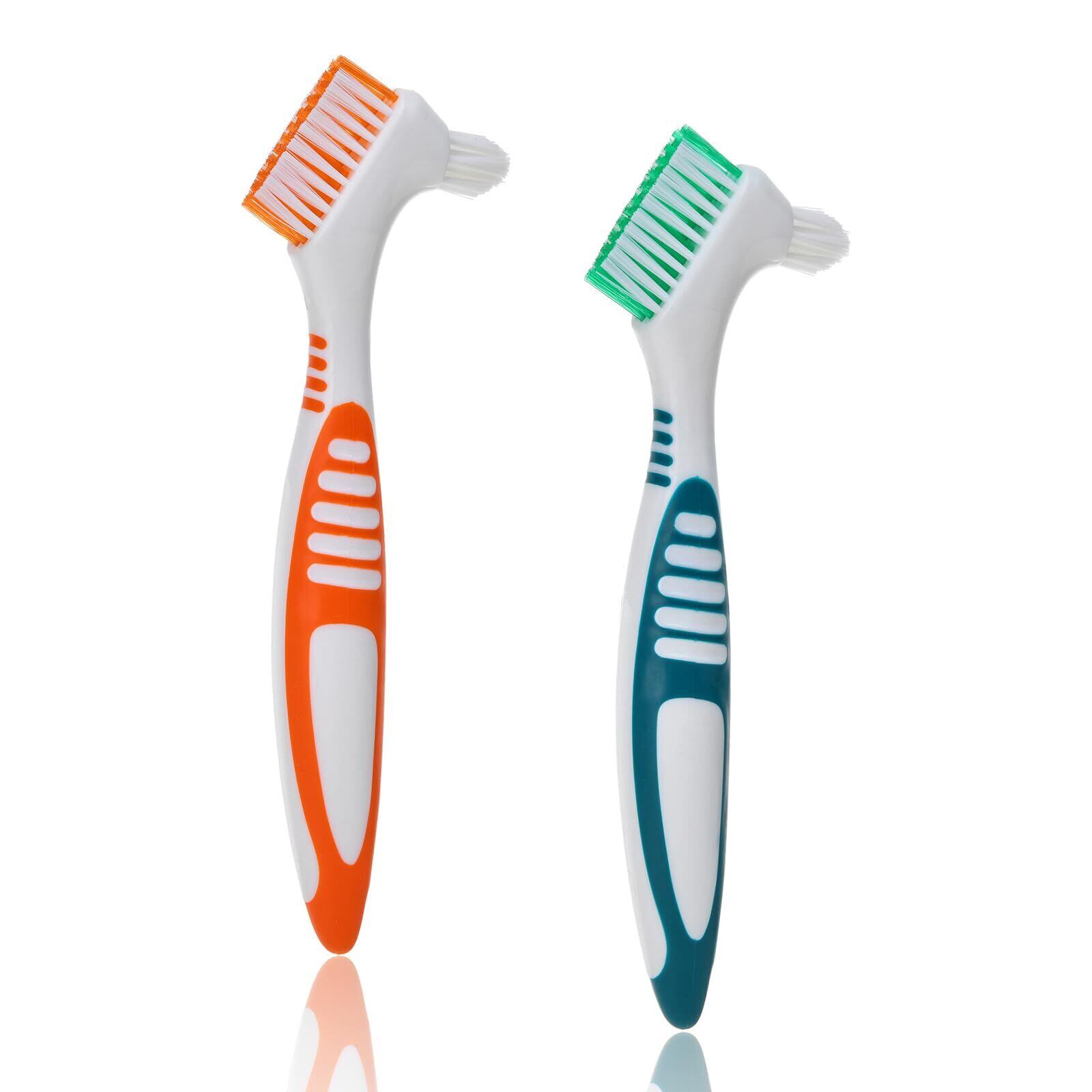 入れ歯用歯ブラシ2本セット 義歯 歯ブラシ 義歯 クリーニングブラシ 義歯用歯ブラシ ポータブル 両面オーラルケア 家庭用 効果的なクリーニング ポータブル 義歯クリーンブラシ (グリーン/オレンジ色) | kki