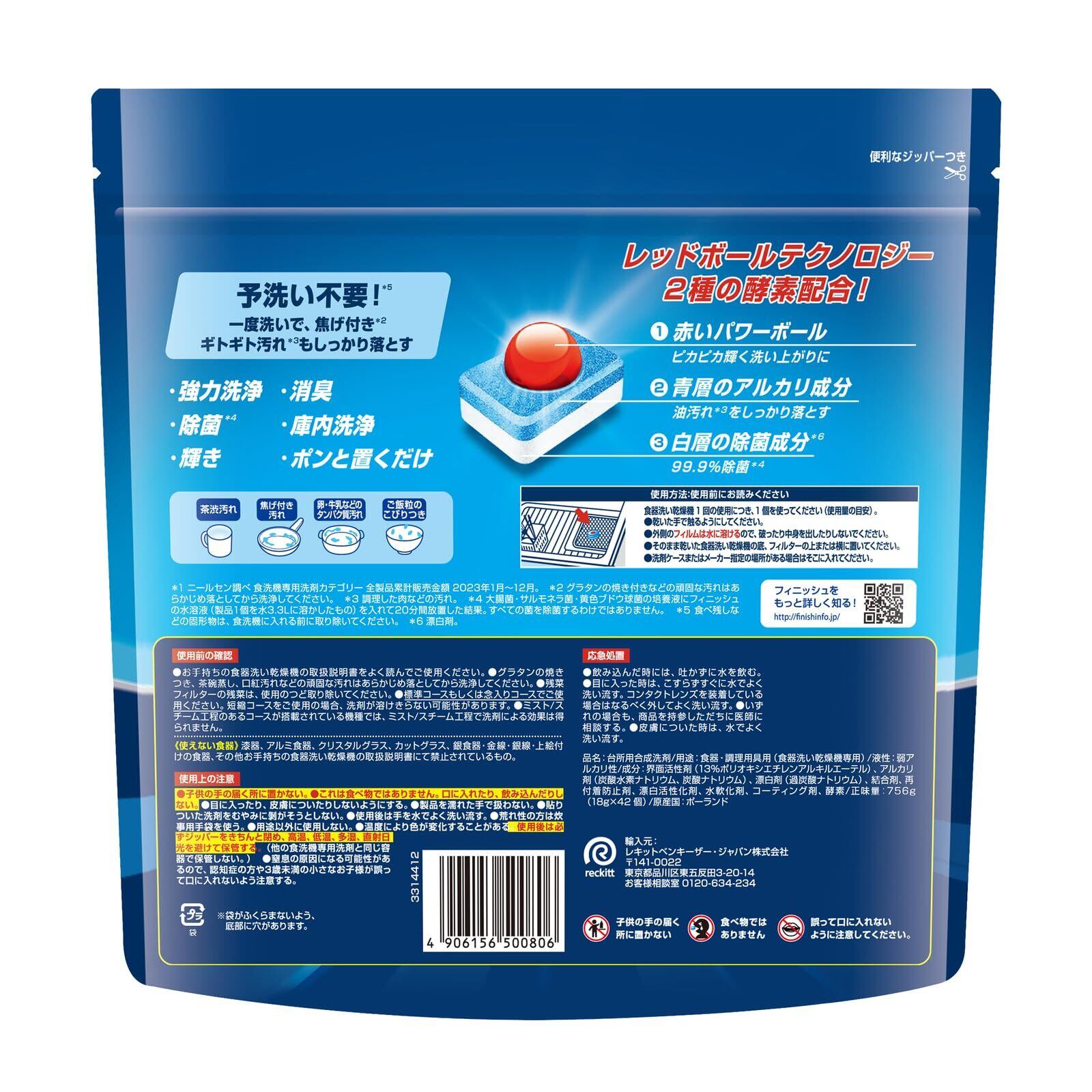 Finish 【まとめ買い】フィニッシュ 食洗機 洗剤 オールインワン プレミアム パワーボールキューブ 42個入 ×2袋