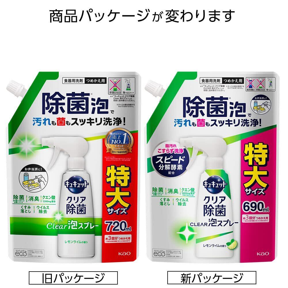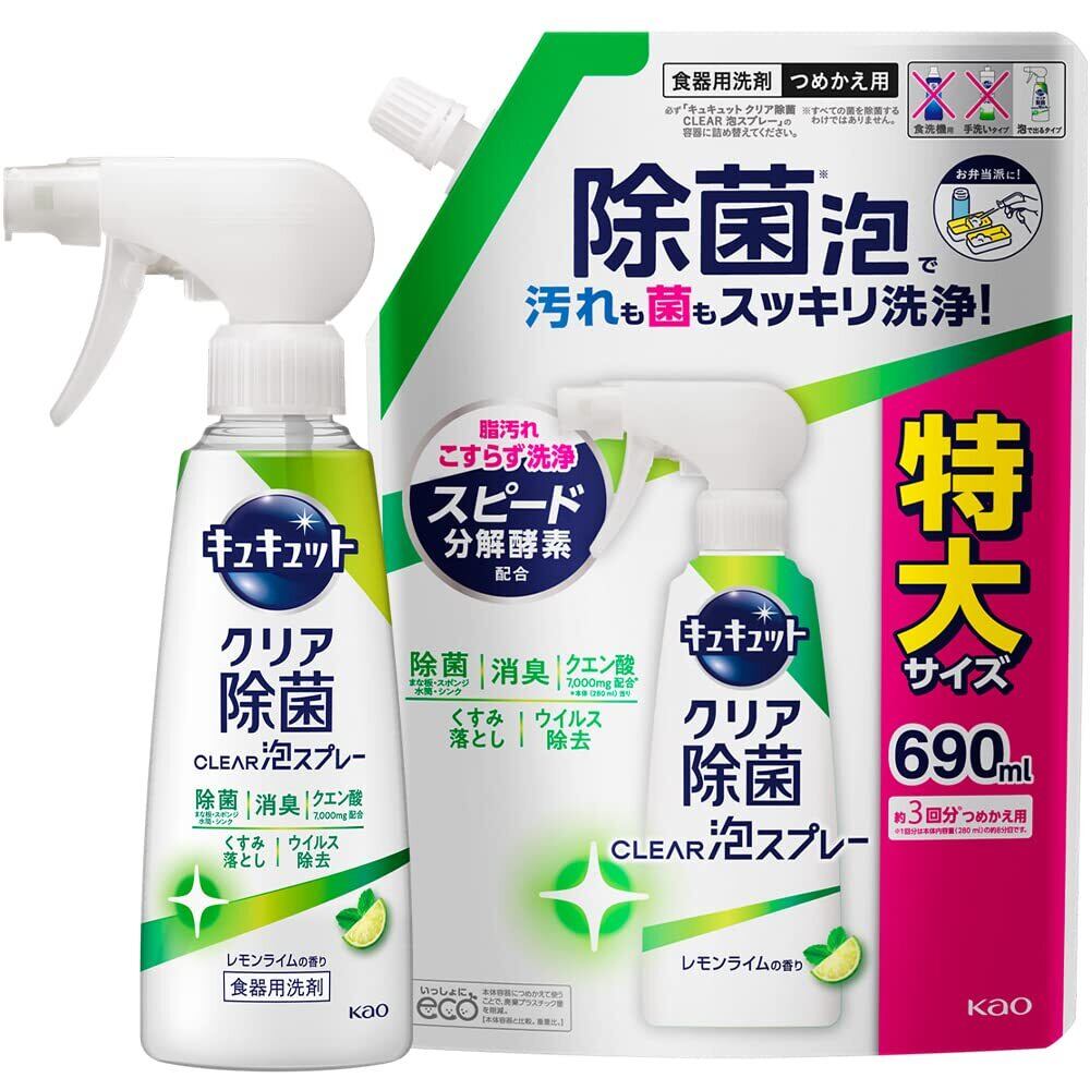 キュキュット 【まとめ買い】 クリア除菌CLEAR泡スプレー 食器用洗剤 奥・ミゾ・スキマまでこすらず洗浄! レモンライムの香り 本体 280ml+つめかえ用 690ml