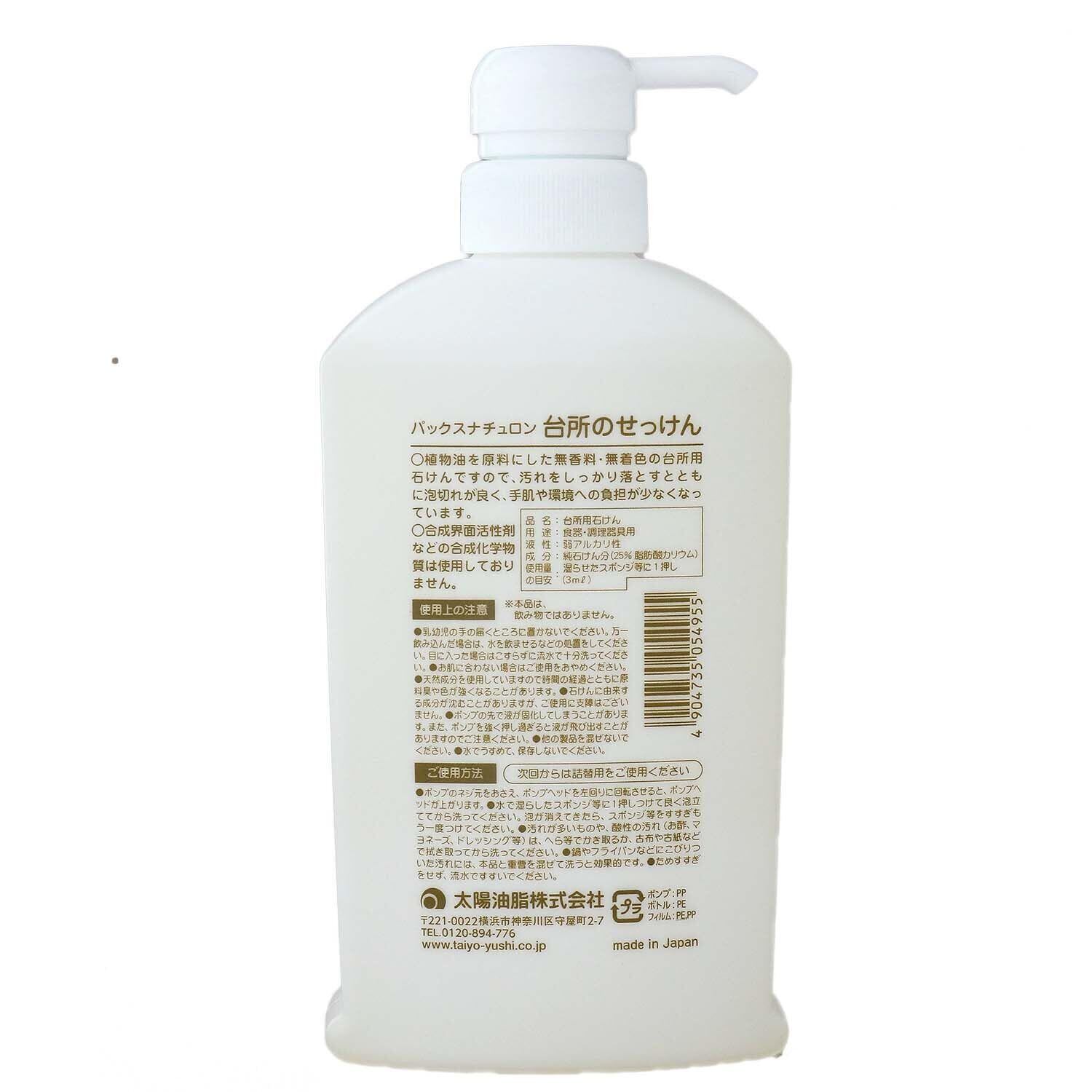 PAX NATURON(パックスナチュロン) 台所のせっけん ( 本体 500ml ) 食器洗い用液体石けん キッチン洗剤 食器洗い洗剤 ( 無香料 / 天然由来100% ) 太陽油脂