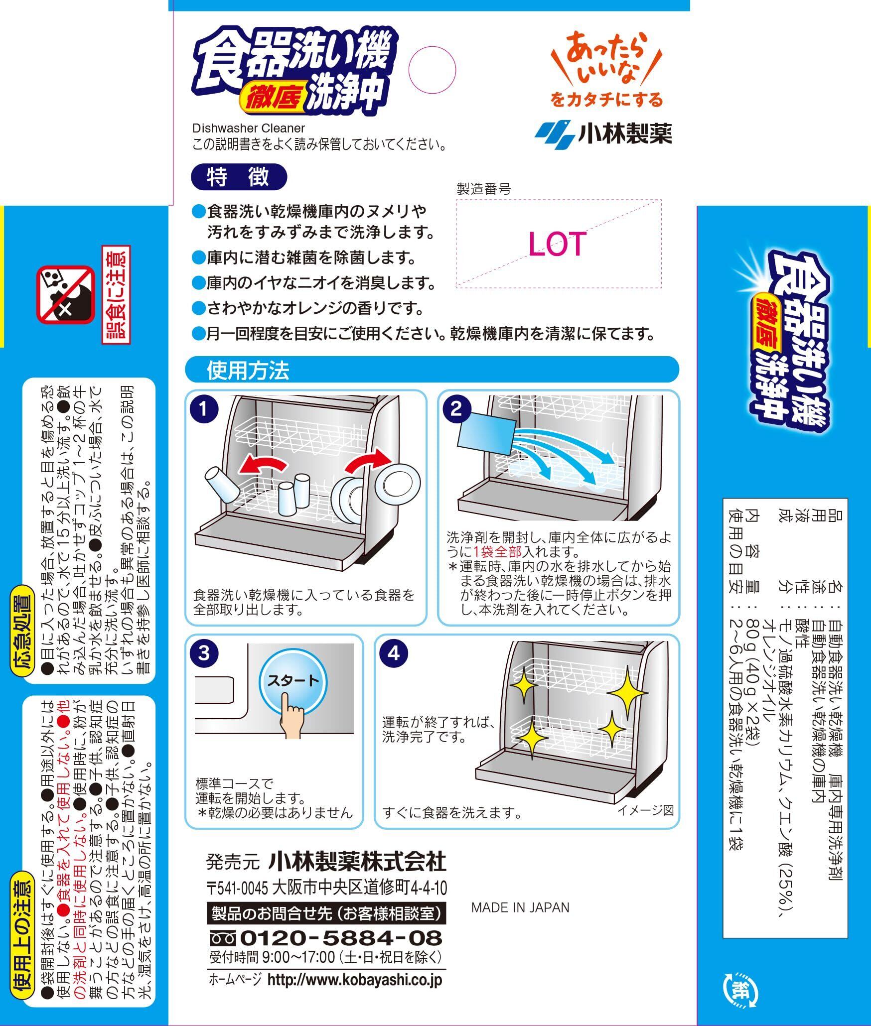 小林製薬 食器洗い機洗浄中 食器洗い機徹底洗浄中 庫内のヌメリ・雑菌に オレンジオイル配合 除菌 粉末タイプ 2回分 食洗機用 洗剤 庫内クリーナー