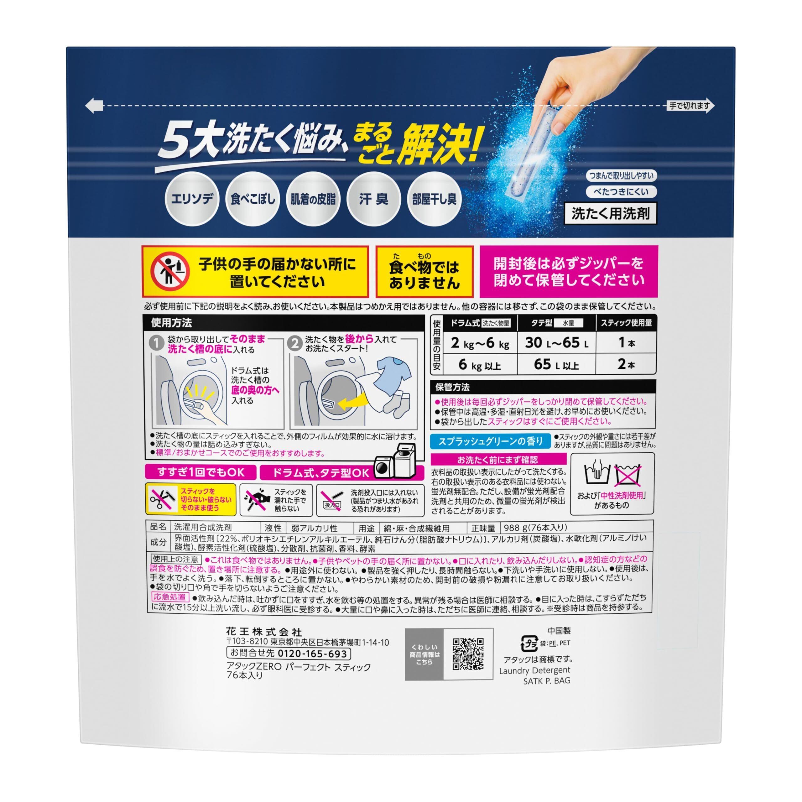 アタックZERO パーフェクトスティック 76本入り 粉末 洗たく用洗剤 スプラッシュグリーン