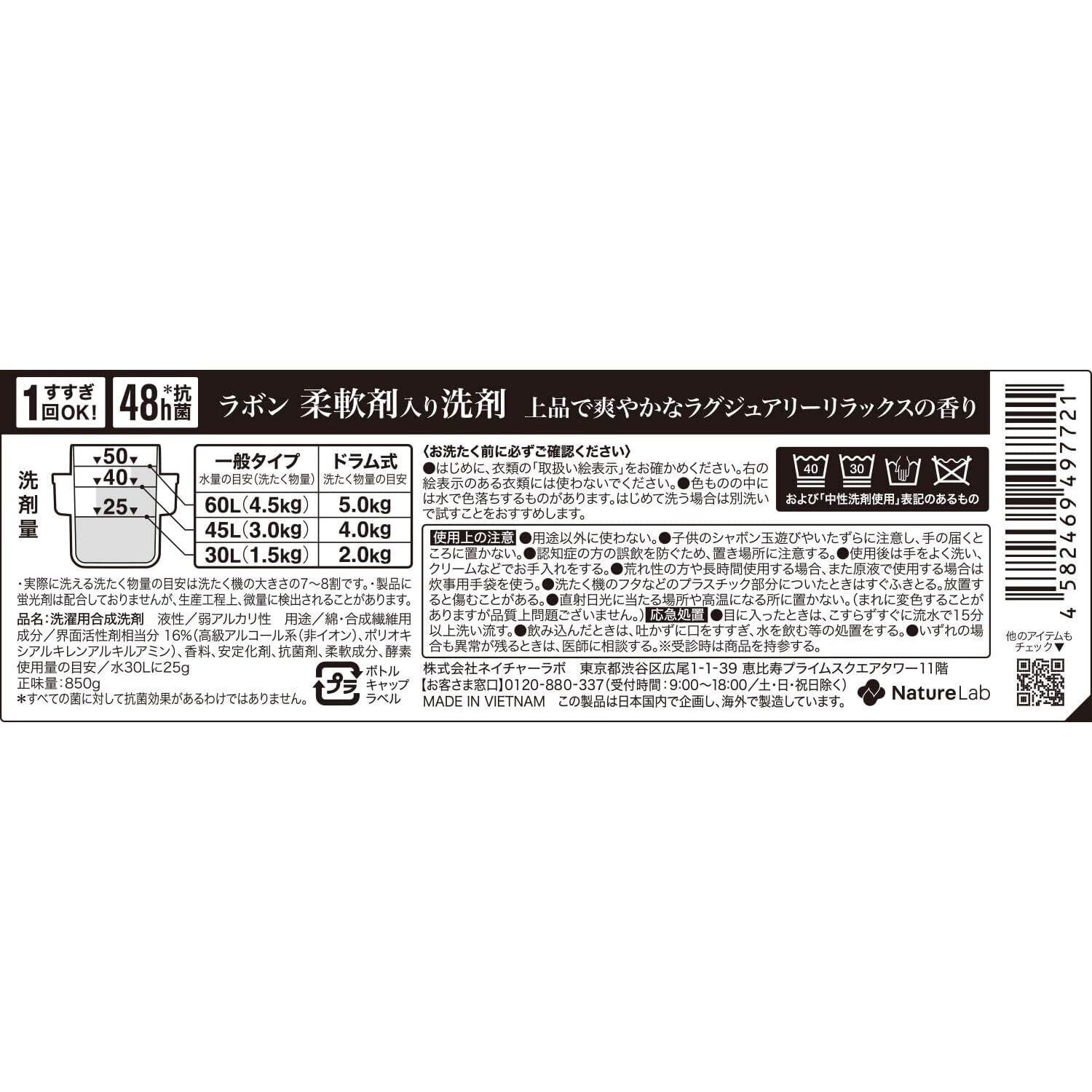 ラボン(Lavons) 柔軟剤入り 液体 洗濯洗剤 ラグジュアリーリラックス [アンバーウッディ] 850g