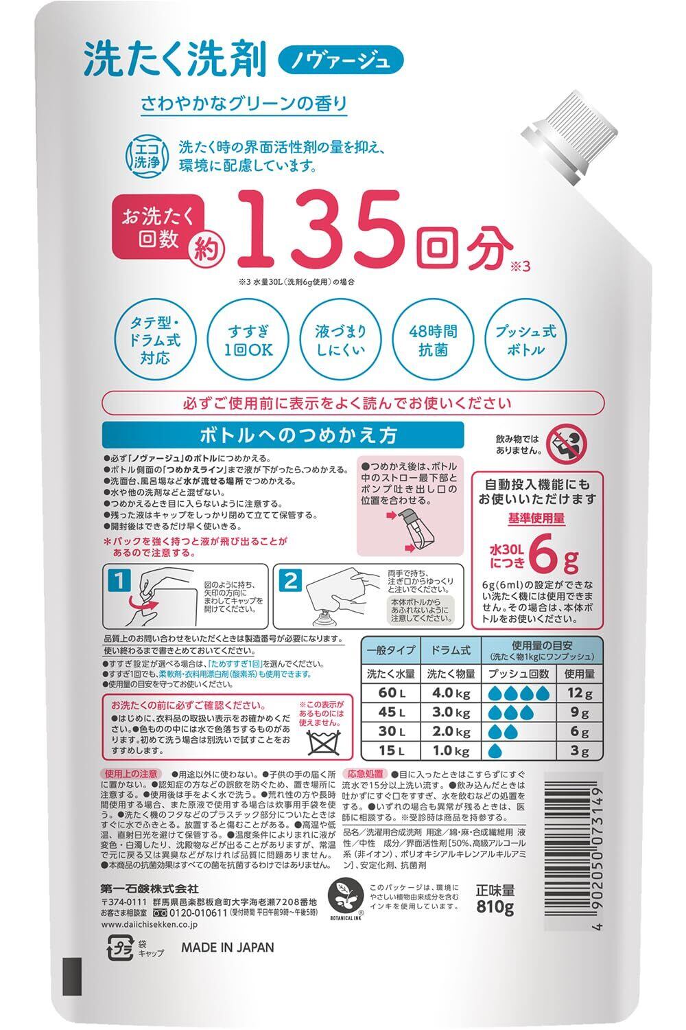 [ノヴァージュ公式] 超濃縮 液体洗剤 自動投入【 ノヴァージュ 詰替用 大容量810g 】 部屋干し 洗剤 洗濯洗剤 ( 縦型 ドラム式 対応 ) 詰め替え 大容量 洗衣液 部屋ぼし洗剤 | kki