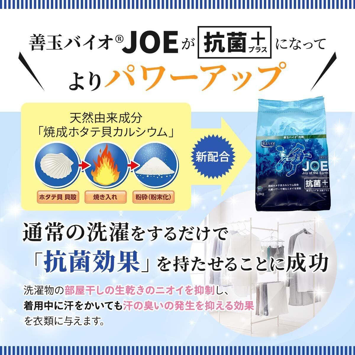 善玉バイオ浄 エコプラッツ JOE 抗菌プラス 粉末 エコ洗剤 無香料 【3袋(詰替容器あり)】