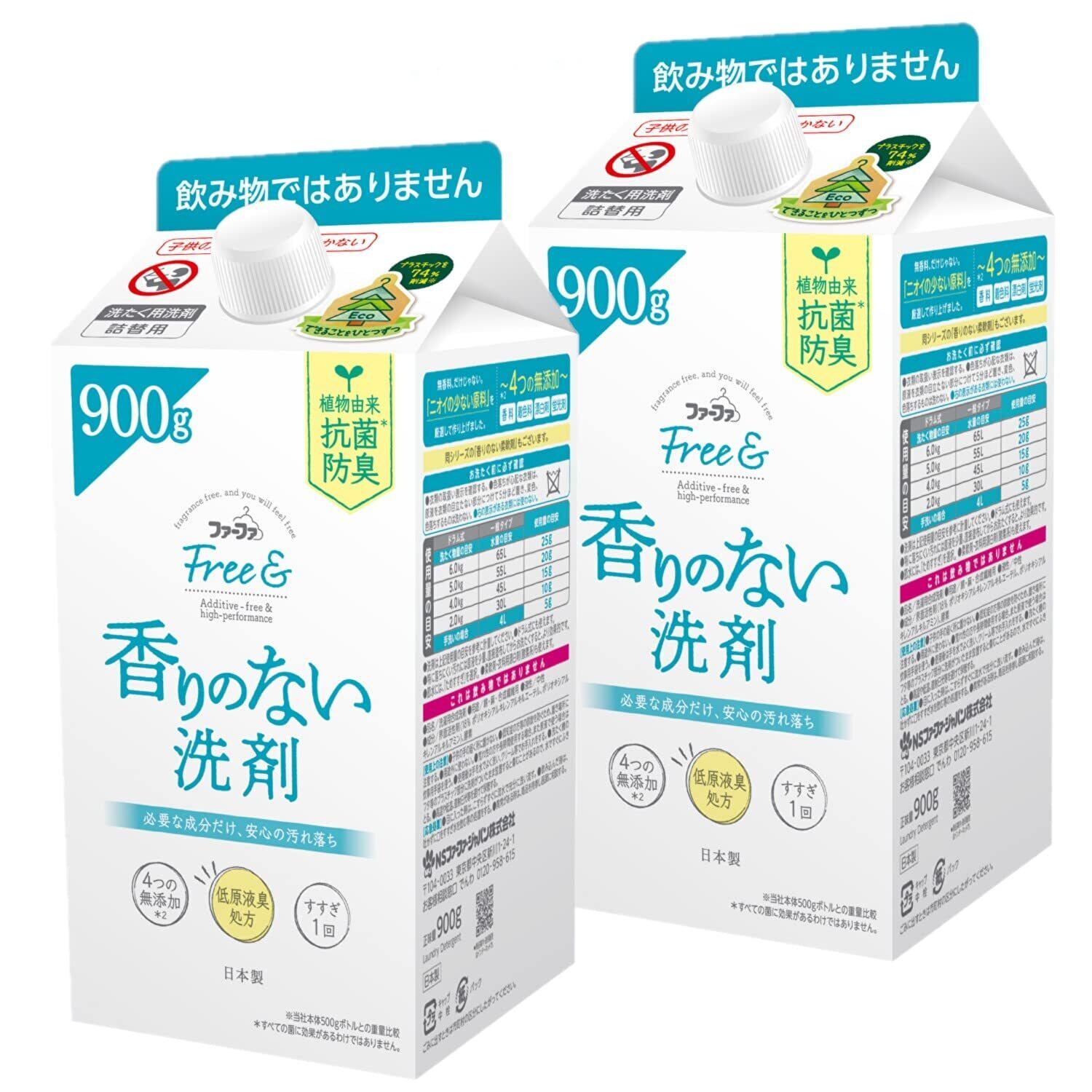 【まとめ買い】 ファーファ フリー&超コン 液体洗剤 無香 詰替 900g×2個