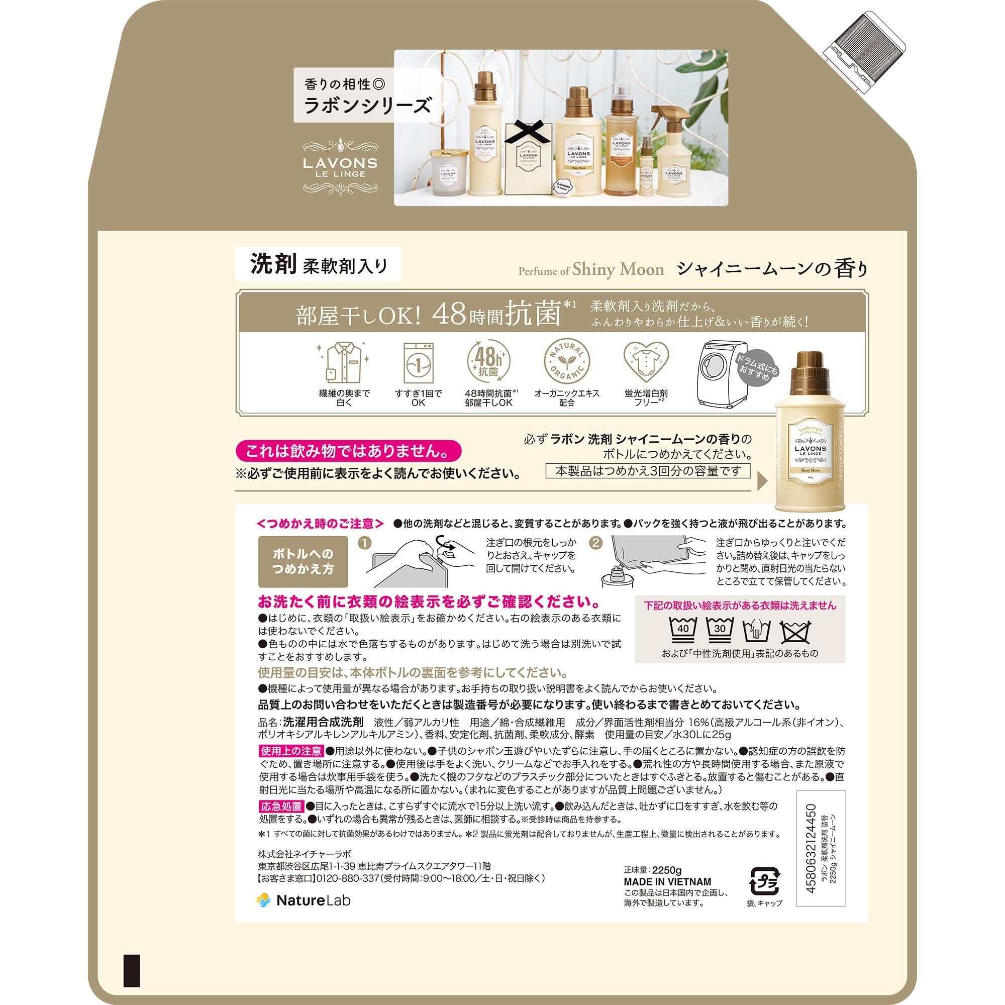ラボン(Lavons) 柔軟剤入り 洗濯洗剤 大容量 シャイニームーン [フローラルグリーン] 詰め替え 3倍サイズ 2250g