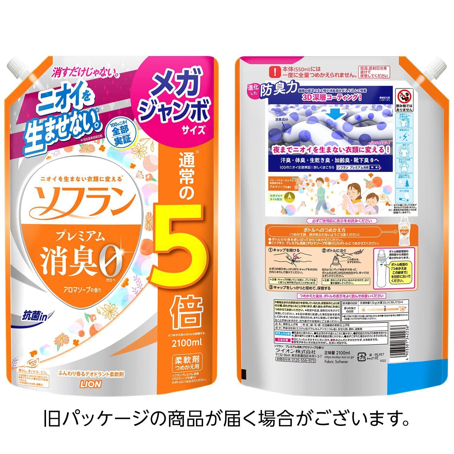 ソフラン プレミアム消臭 詰替メガジャンボ2100ml アロマソープ 生乾きでも菌を生ませずニオわせない 柔軟剤 抗菌 部屋干し 汗臭 体臭 加齢臭 靴下臭