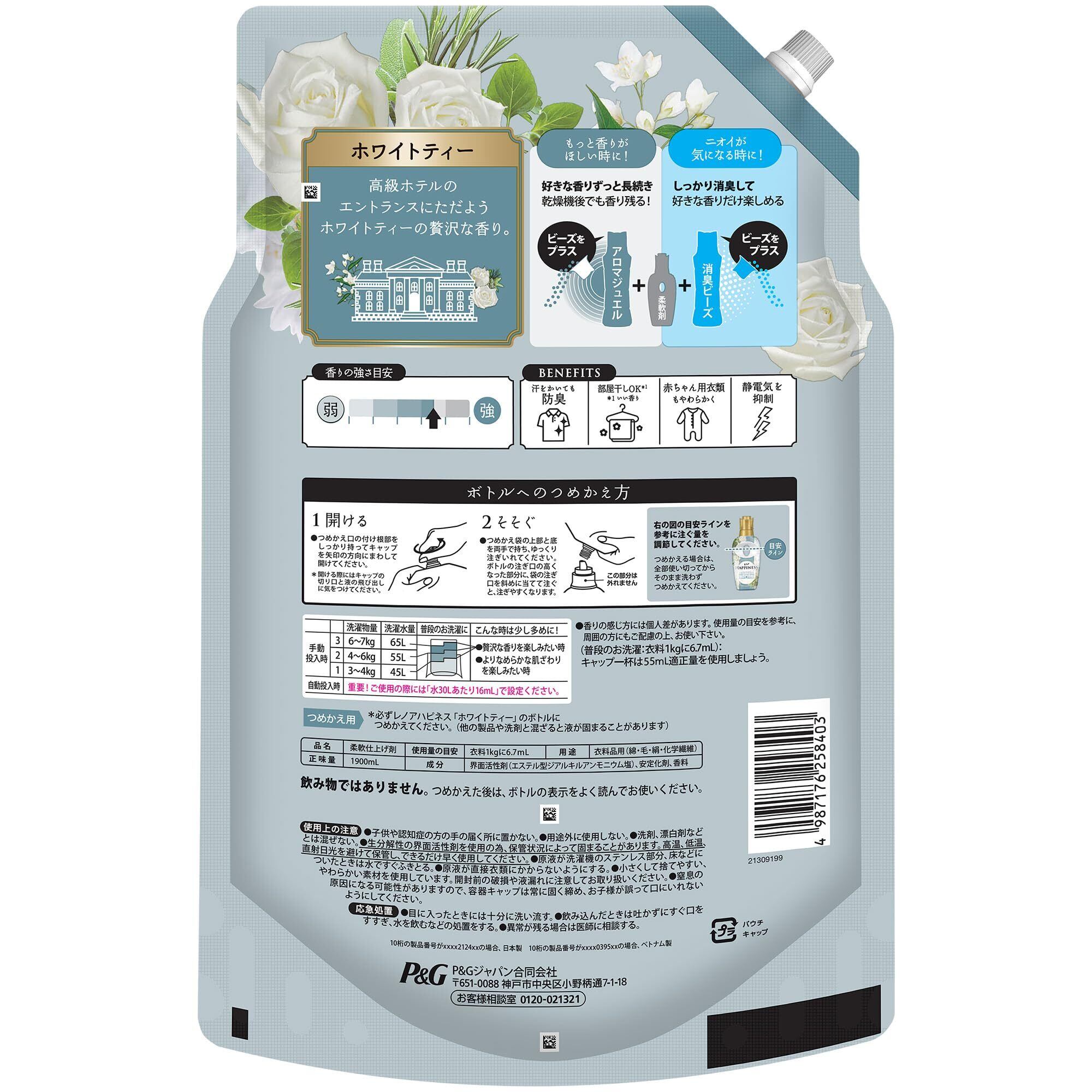 レノア ハピネス 5つ星ホテルの夢ふわタッチ 柔軟剤 ホワイトティーの香り 詰め替え 1900mL [大容量]
