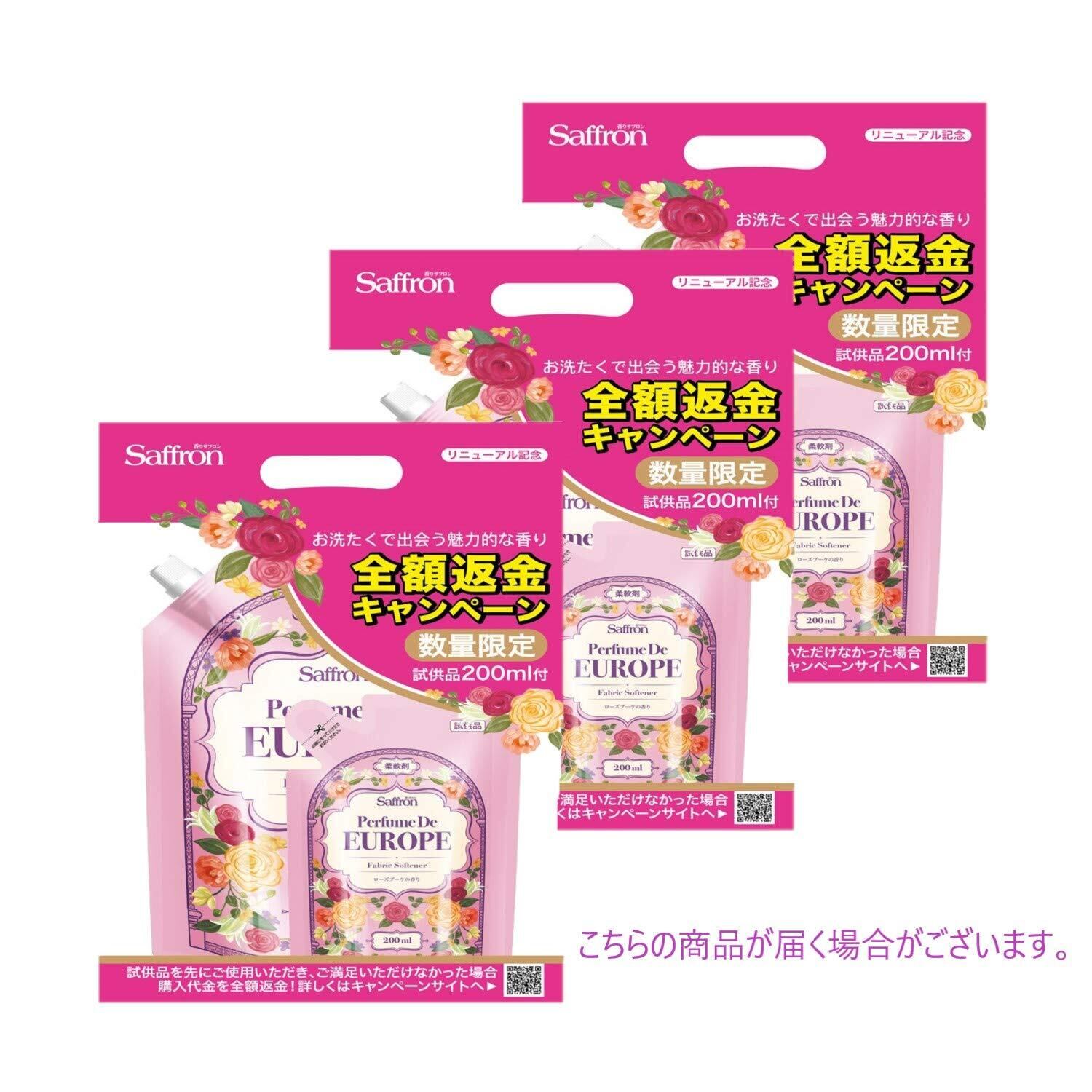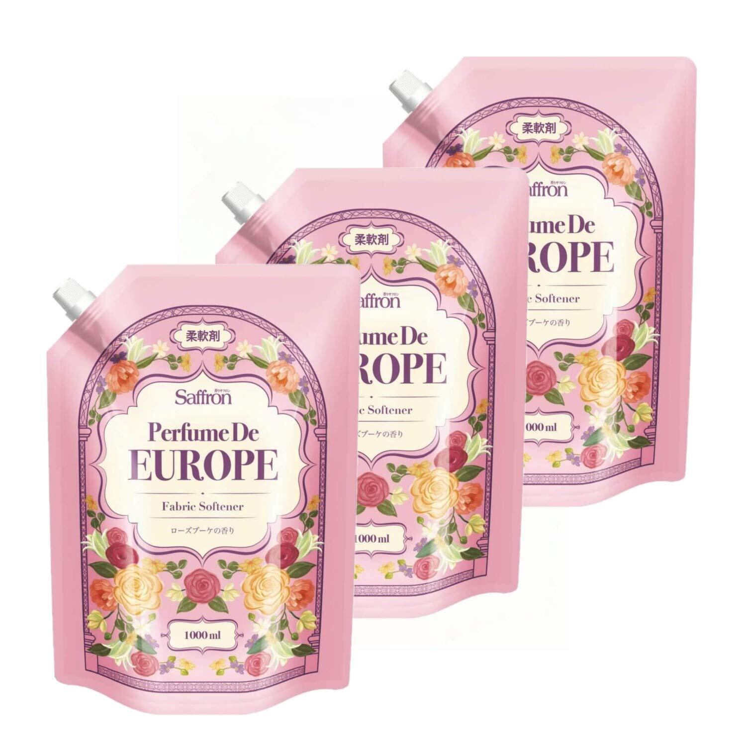 【まとめ買い】 トイレタリージャパンインク 香りサフロン柔軟剤パフュームドヨーロッパ ローズブーケの香り大容量1000ml×3個