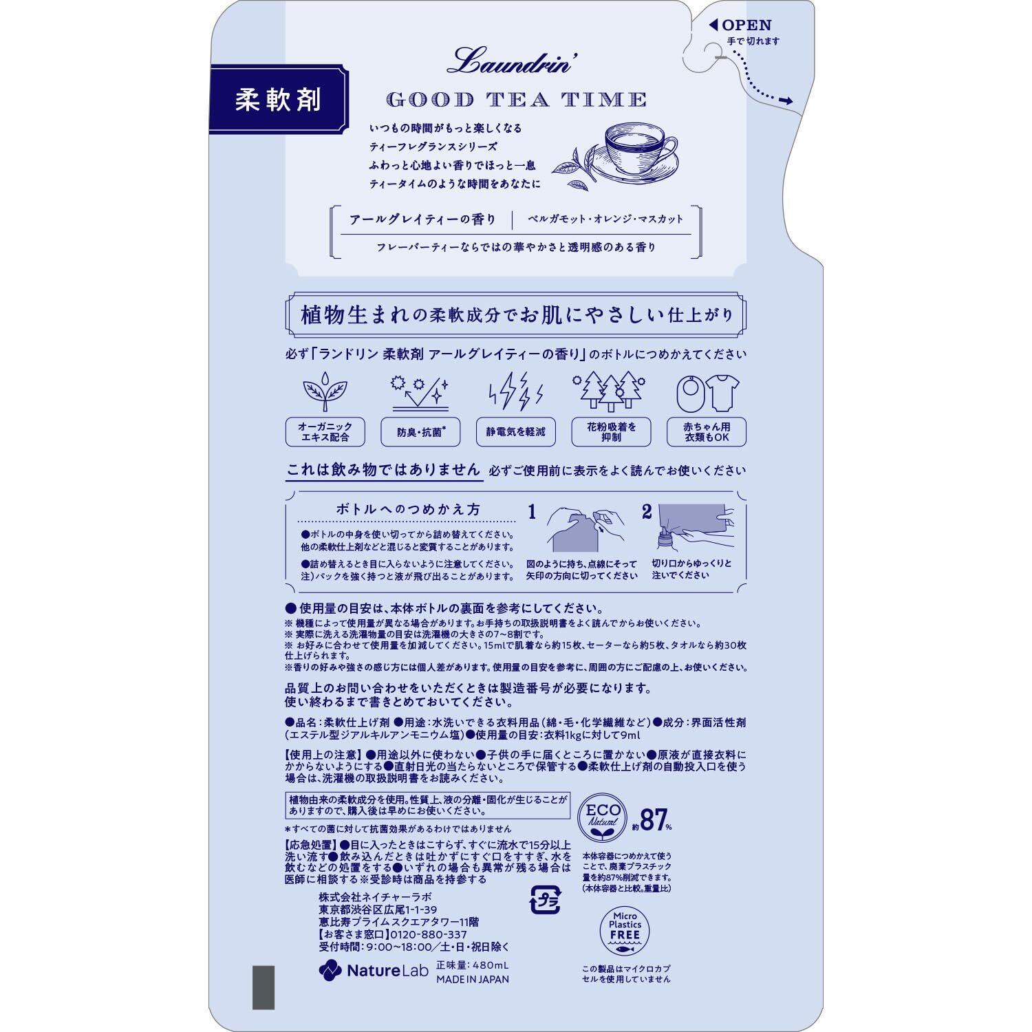 Laundrin'(ランドリン) 液体 柔軟剤 アールグレイティーの香り 詰め替え 480ml