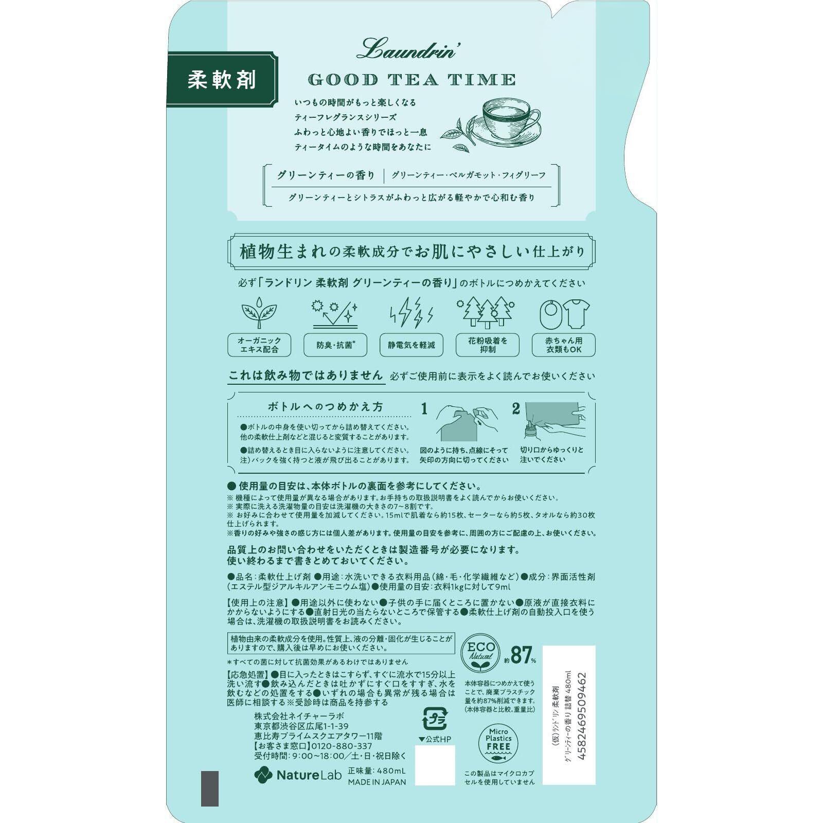 ランドリン 液体 柔軟剤 グリーンティーの香り 詰め替え 480ml (× 3)