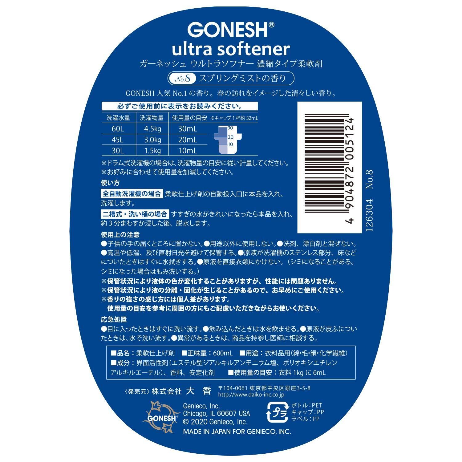 GONESH(ガーネッシュ)ウルトラソフナー(柔軟剤)NO.8(ほのかに甘いフルーツ系の香り)600ml