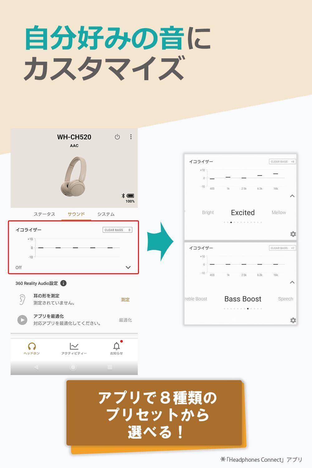 ソニー(SONY) ワイヤレスヘッドホン WH-CH520:Bluetooth対応/軽量設計 約147g/専用アプリ対応により好みの音質にカスタマイズできる「イコライザー」設定対応/ベージュ WH-CH520 C 小 | kki