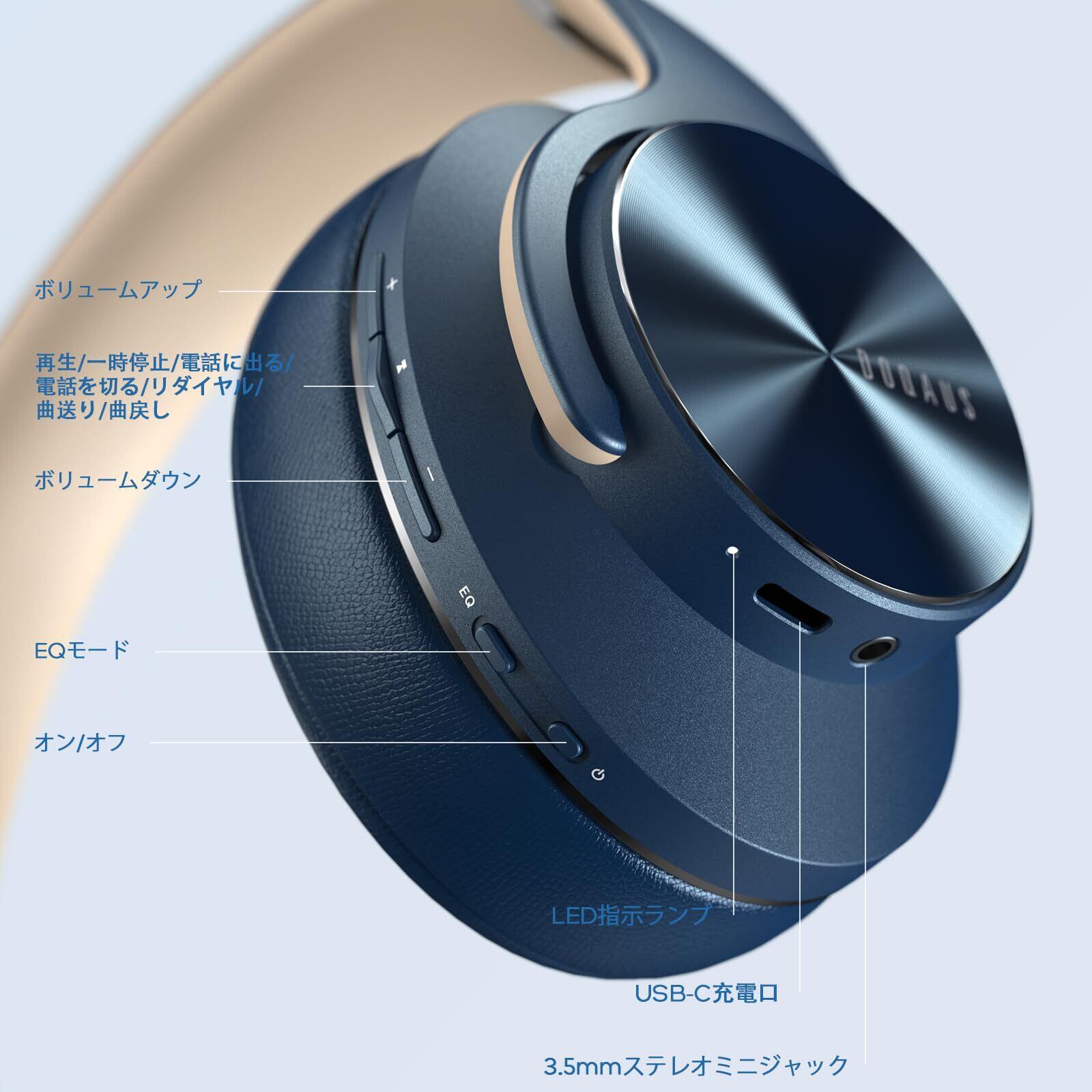 DOQAUS(ドカアス) ヘッドホン Bluetooth5.3 ワイヤレスヘッドホン 最大80時間連続再生 3EQサウンドモード オーバーイヤーヘッドホン マイク内蔵 有線対応 密閉型 メモリーフォーム 耳に優しい 携帯・パソコン・ウォークマン対応 LIFE3 (ネイビーブルー) | kki