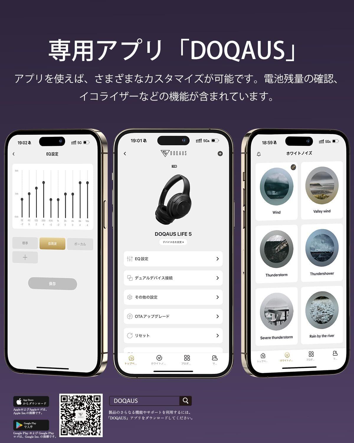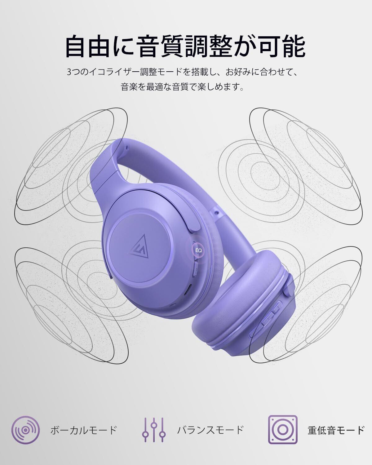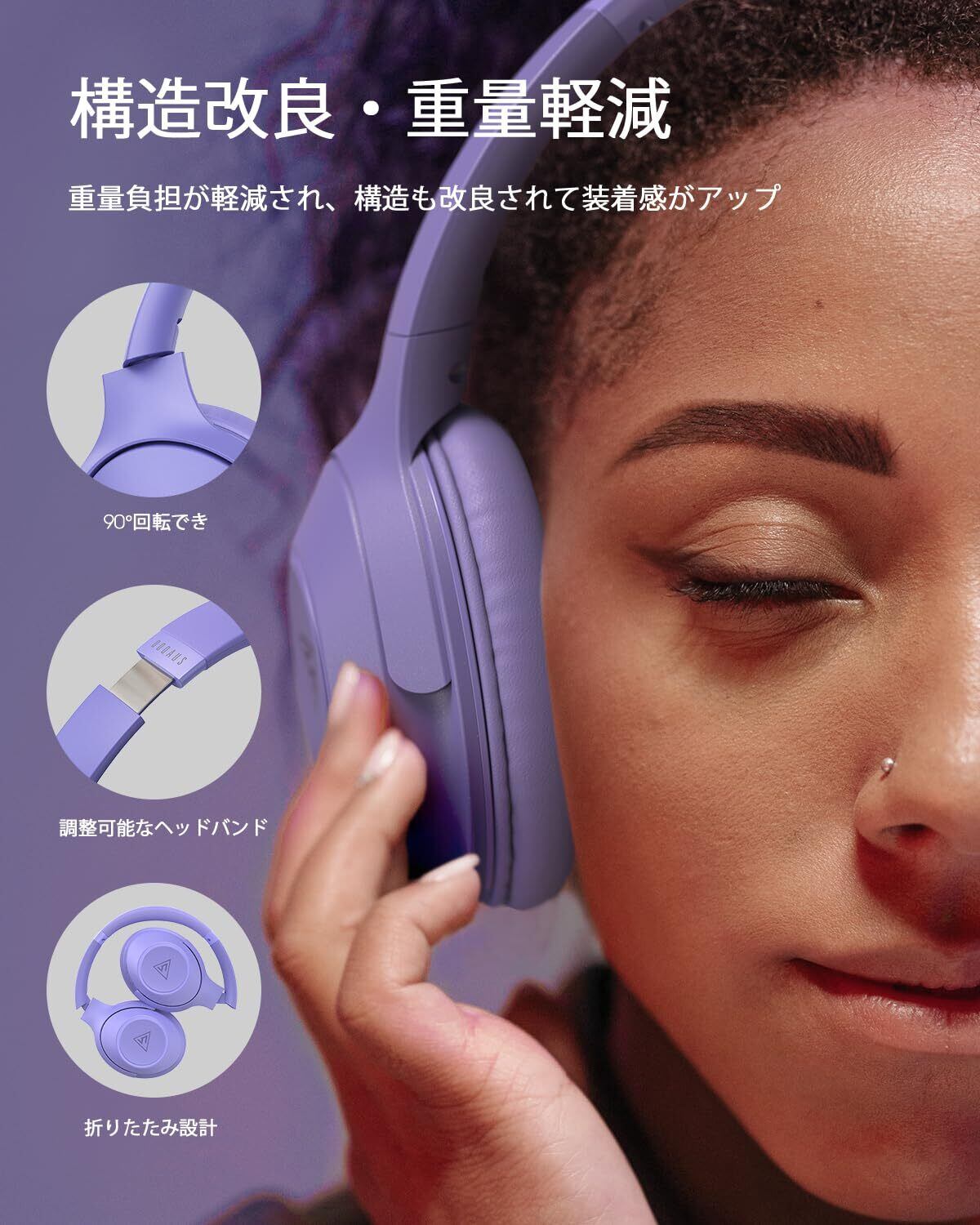 DOQAUS(ドカアス) ワイヤレスヘッドホン Bluetooth5.3 最大70時間連続再生 3EQモード 有線無線両用 AAC対応 マルチポイント 密閉型 マイク内蔵 オーバーイヤー PC・スマホ・ウォークマン対応 軽量 slim版 LIFE5 (うすむらさき) | kki