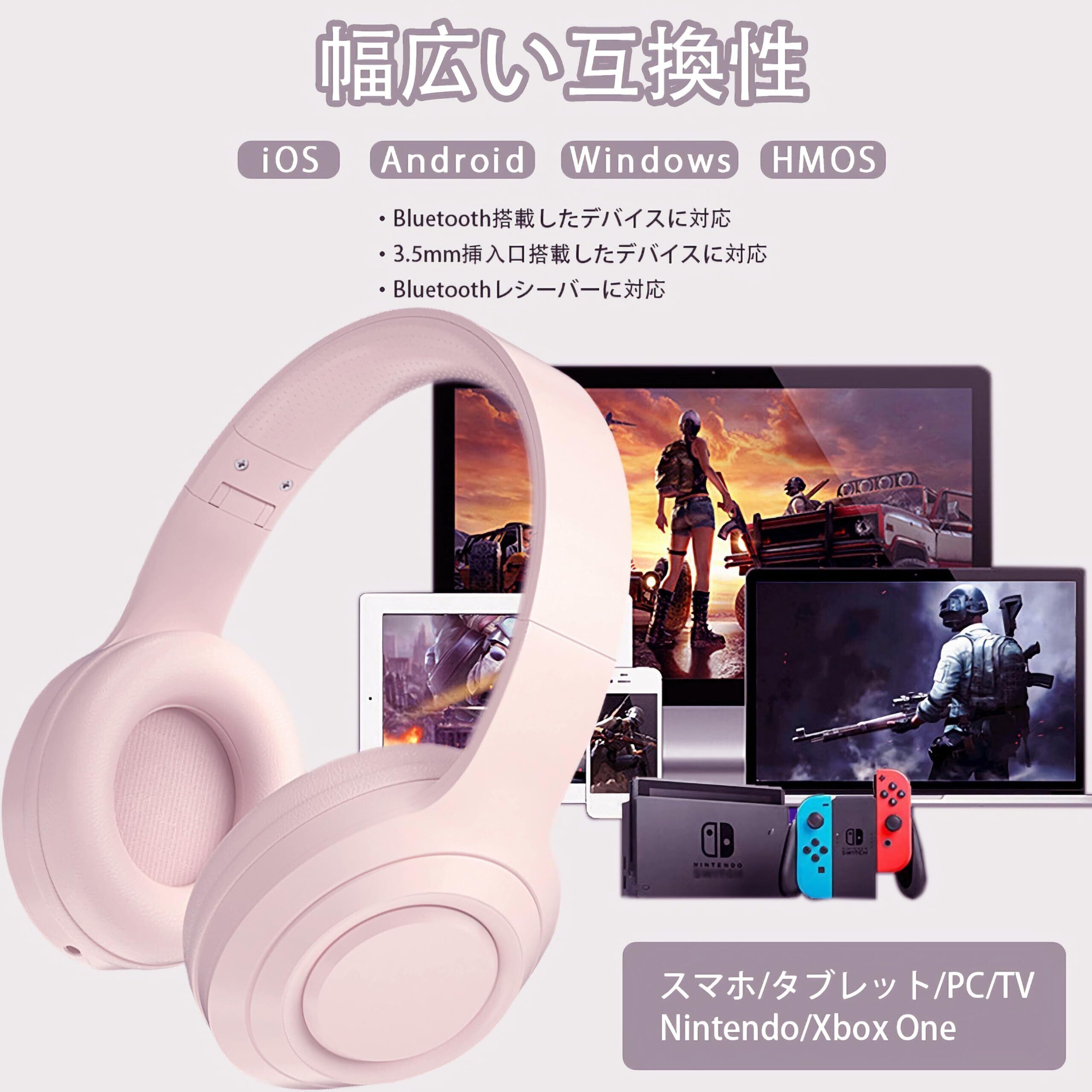 Bluetooth ヘッドホン ワイヤレスヘッドホン 密閉型 重低音 オーバーイヤーヘッドホン マイク付き 軽量設計 折りたたみ 有線 無線 TFカード 3Way ギフト 誕生日 プレゼント ヘッドフォン Bluetooth 5.3 収納袋付き (桜ピンク) | kki