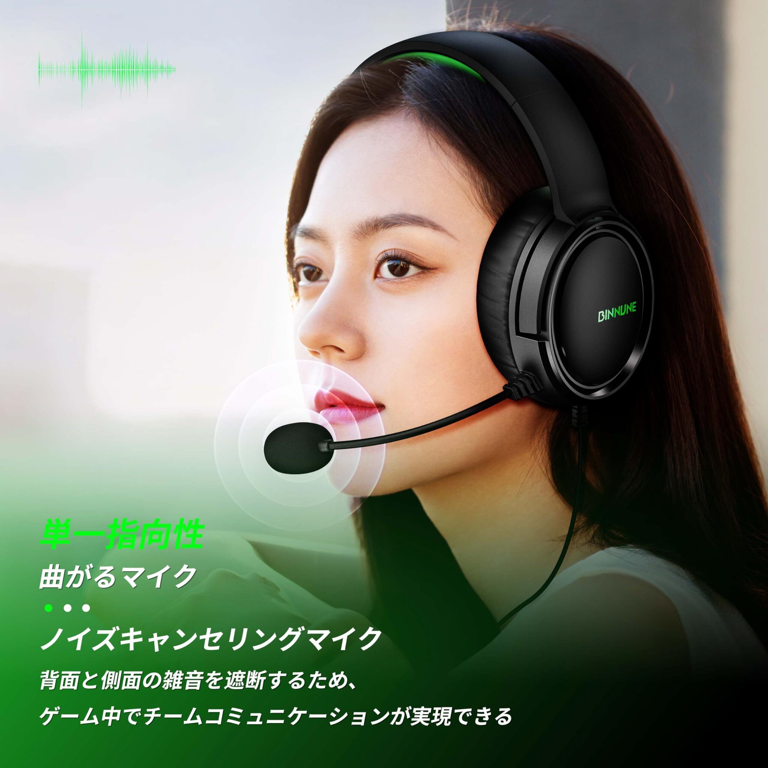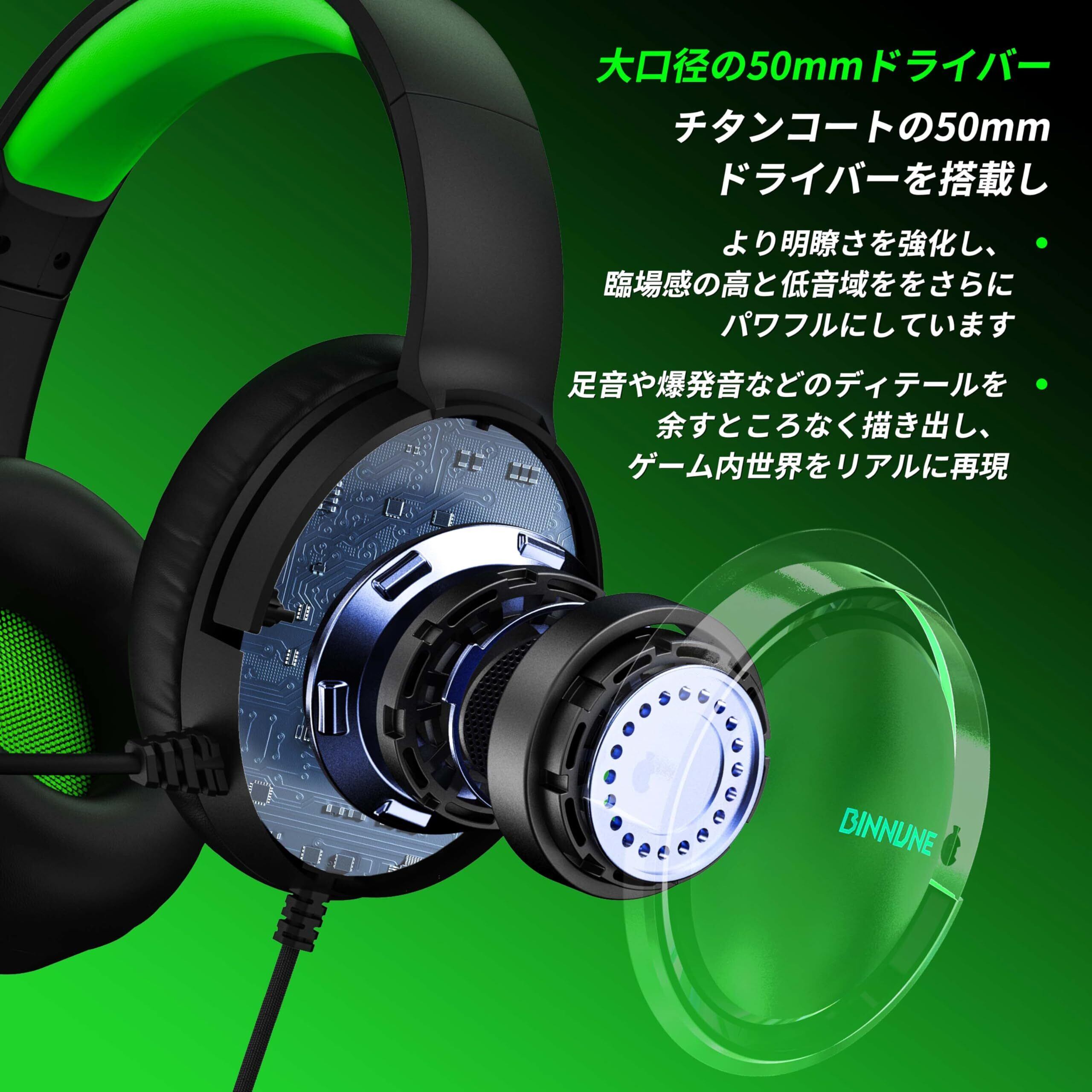 BINNUNE ゲーミングヘッドセット Ps5 ヘッドセット 3.5mm有線 xboxヘッドセット マイク付き ミュート機能付き ゲーミングヘッドホン 50MMドライバー低遅延 軽量 ノイズキャンセリング マイク FPS ゲーム用 ヘッドフォン PC Ps5 Ps4 xbox switch対応 | kki