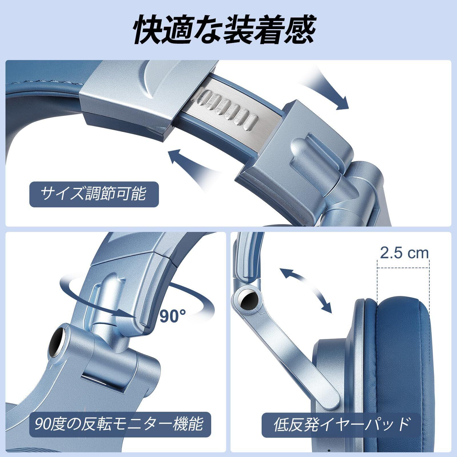 OneOdio A70 ワイヤレスヘッドホン 72時間再生 オーバーイヤーヘッドホン Bluetooth 5.2 低音強化 マイク付き 有線 無線 両用 モニターヘッドホン 密閉型 DJ用/音楽鑑賞/楽器練習Blue | kki