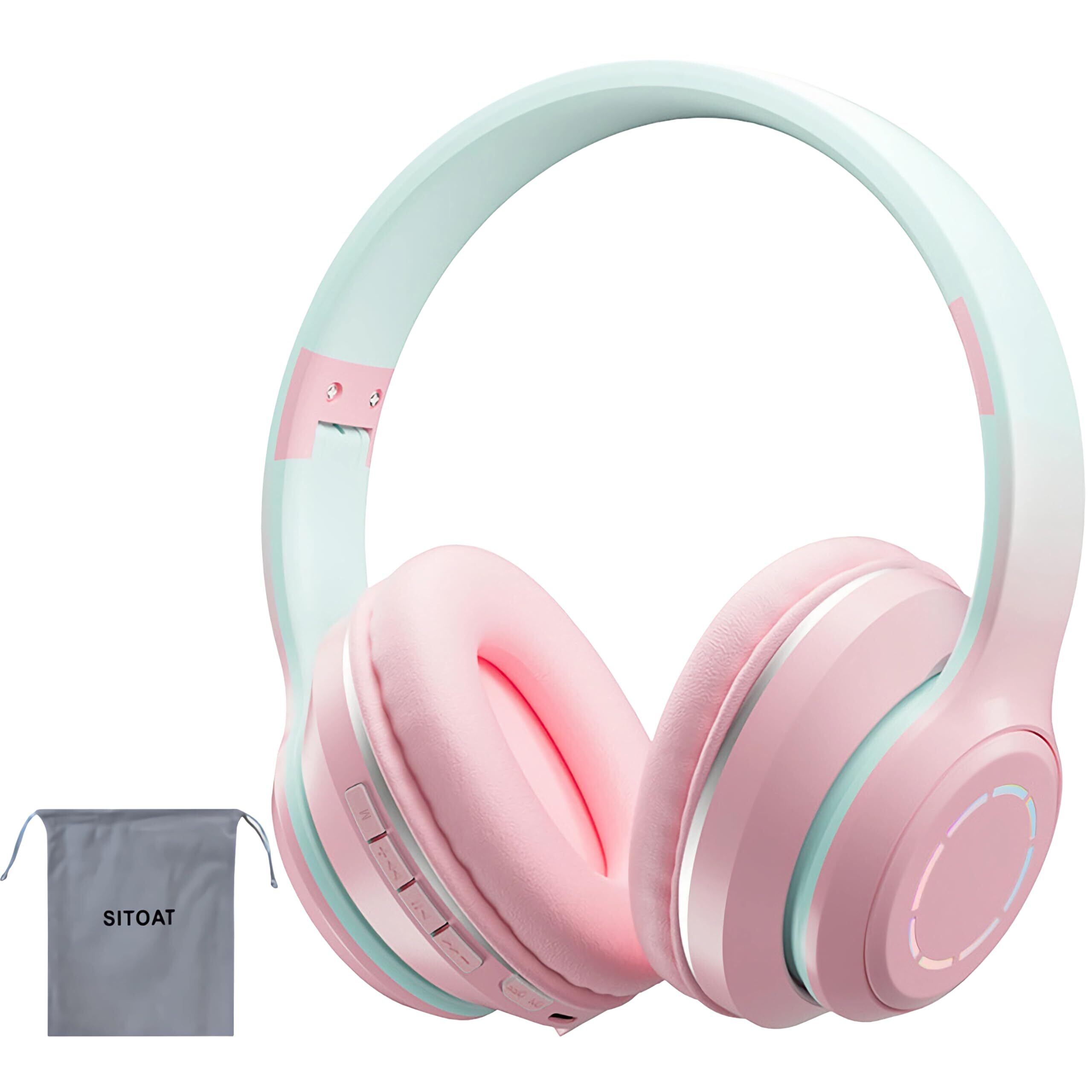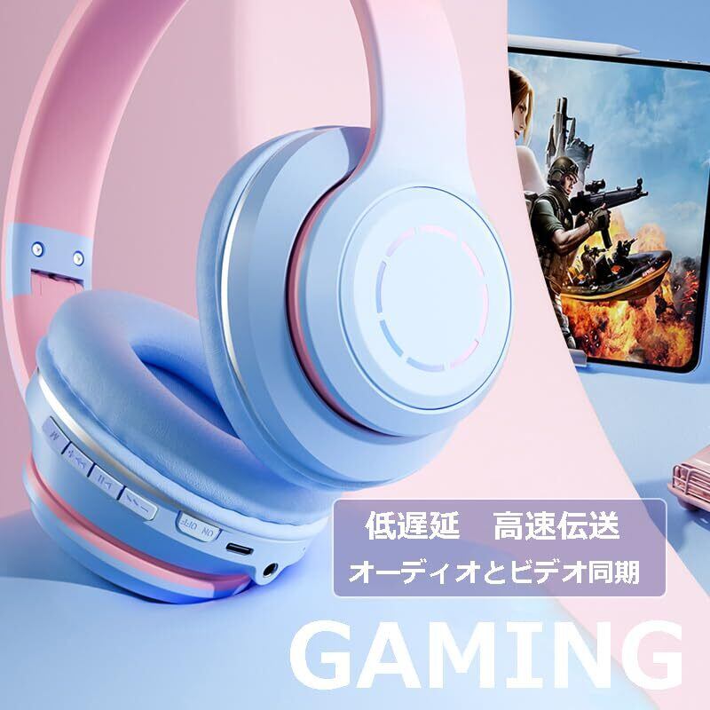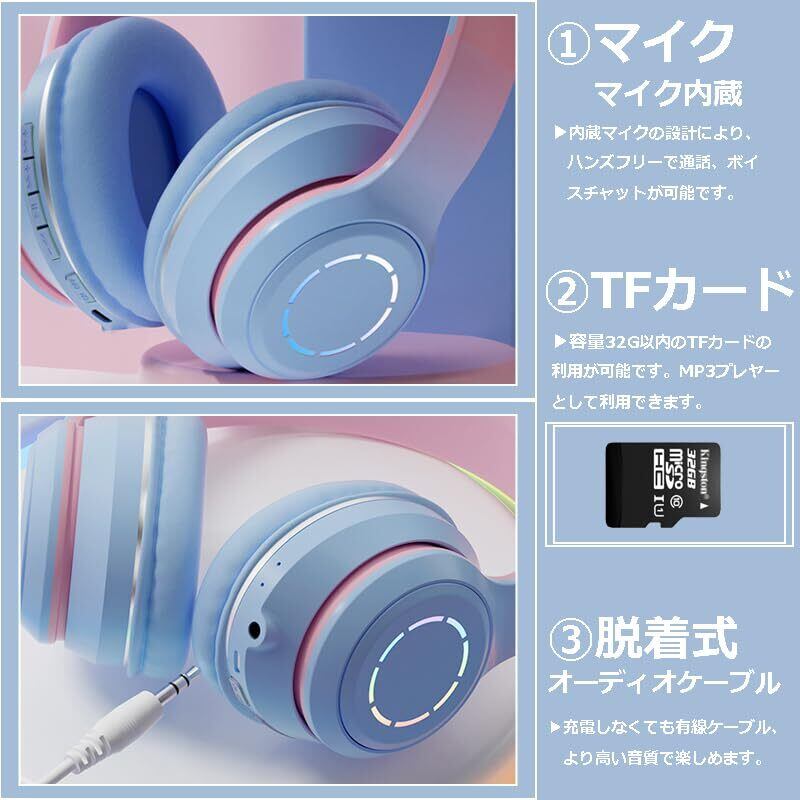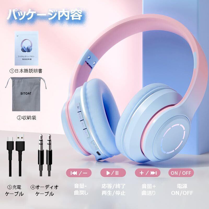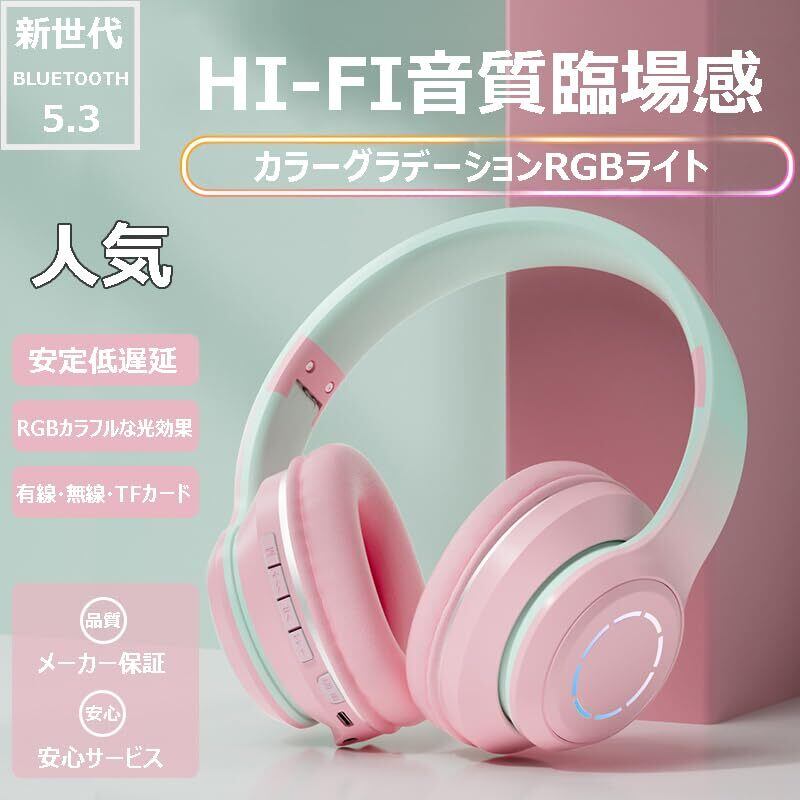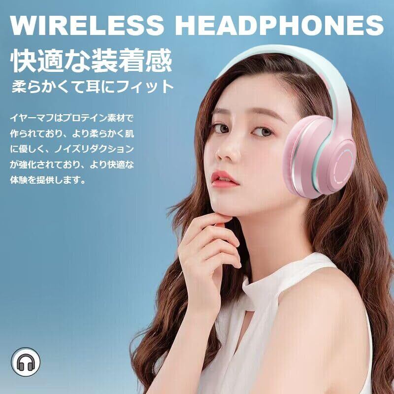 Bluetooth ヘッドホン ワイヤレスヘッドホン 密閉型 重低音 オーバーイヤーヘッドホン マイク付き 折りたたみ RGB LED付き 有線 無線 両用 メモリカード対応 可愛い ギフト誕生日 プレゼント ヘッドフォン Bluetooth 5.3 日本語説明書 収納袋付き ピンク | kki