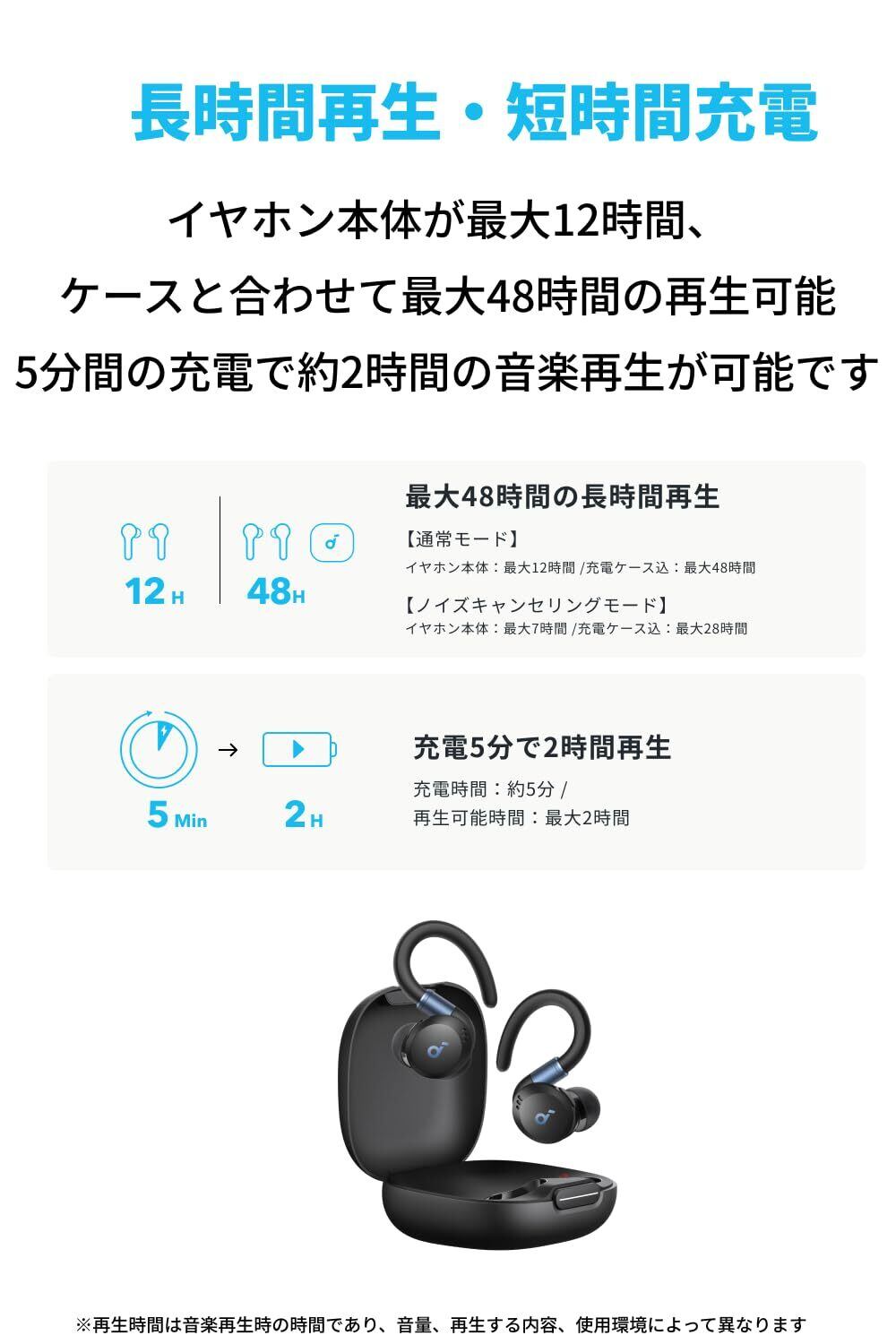 Anker Soundcore Sport X20(Bluetooth 5.3)【完全ワイヤレスイヤホン/カナル型/耳掛け/フック型/アクティブノイズキャンセリング/外音取り込み/音声通話 / IP68防塵防水規格/ 完全防塵・防水/最大48時間音楽再生 / 専用アプリ対応/PSE技術基準適合】ブラック | kki