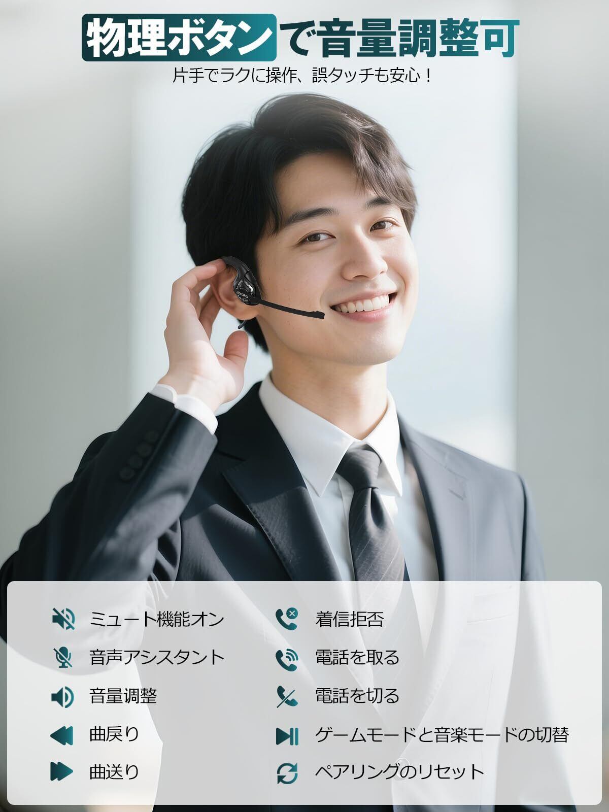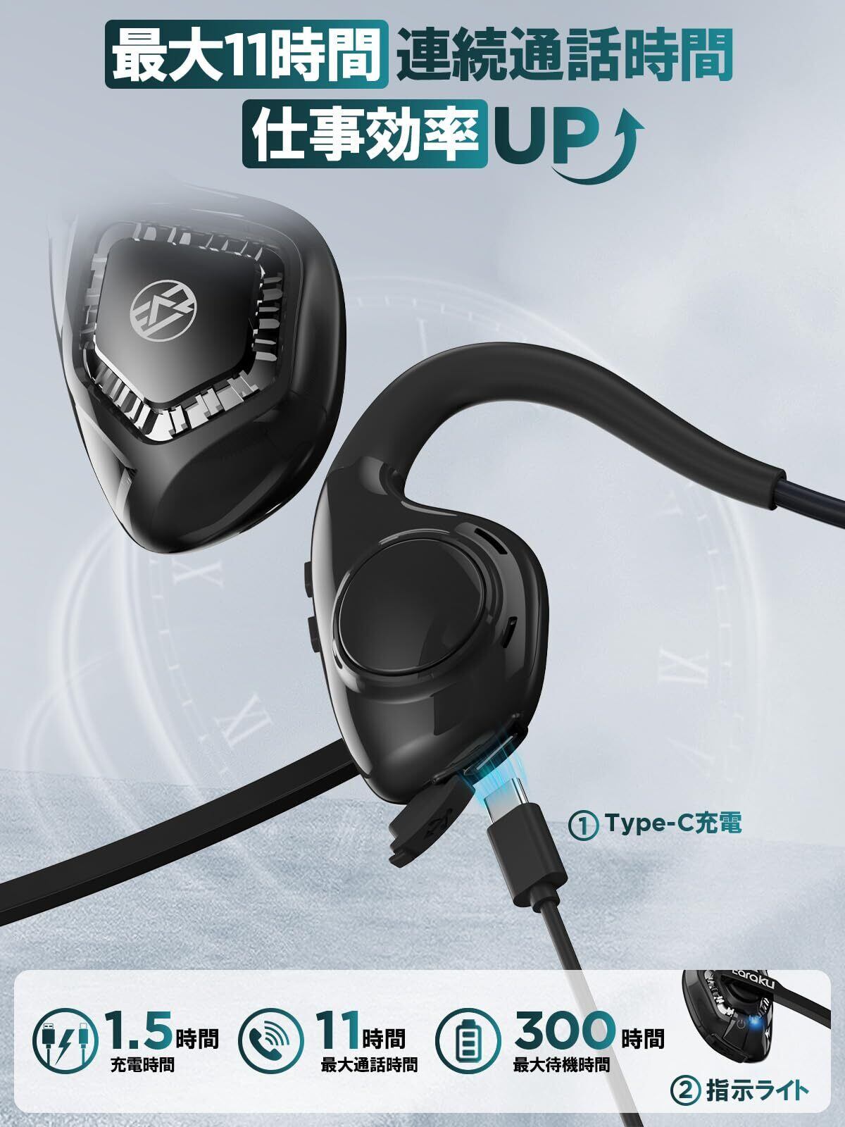 【新装発売通話専用G2】 Bluetooth ヘッドセット Earaku(イアラク) 2025 マイク付き 通話専用 耳を塞がない 日本語音声ガイド ワイヤレス イヤホン ブルートゥース ENCノイズキャンセリング オープンイヤー Bluetooth 5.3 軽量 約28g 両耳 耳掛け式 無線 【ブラック 】 | kki