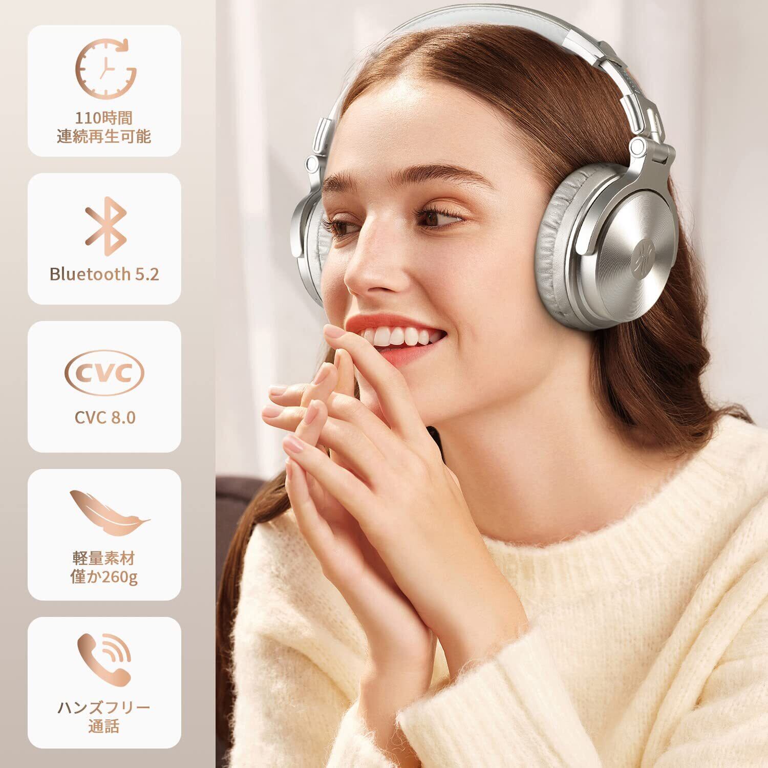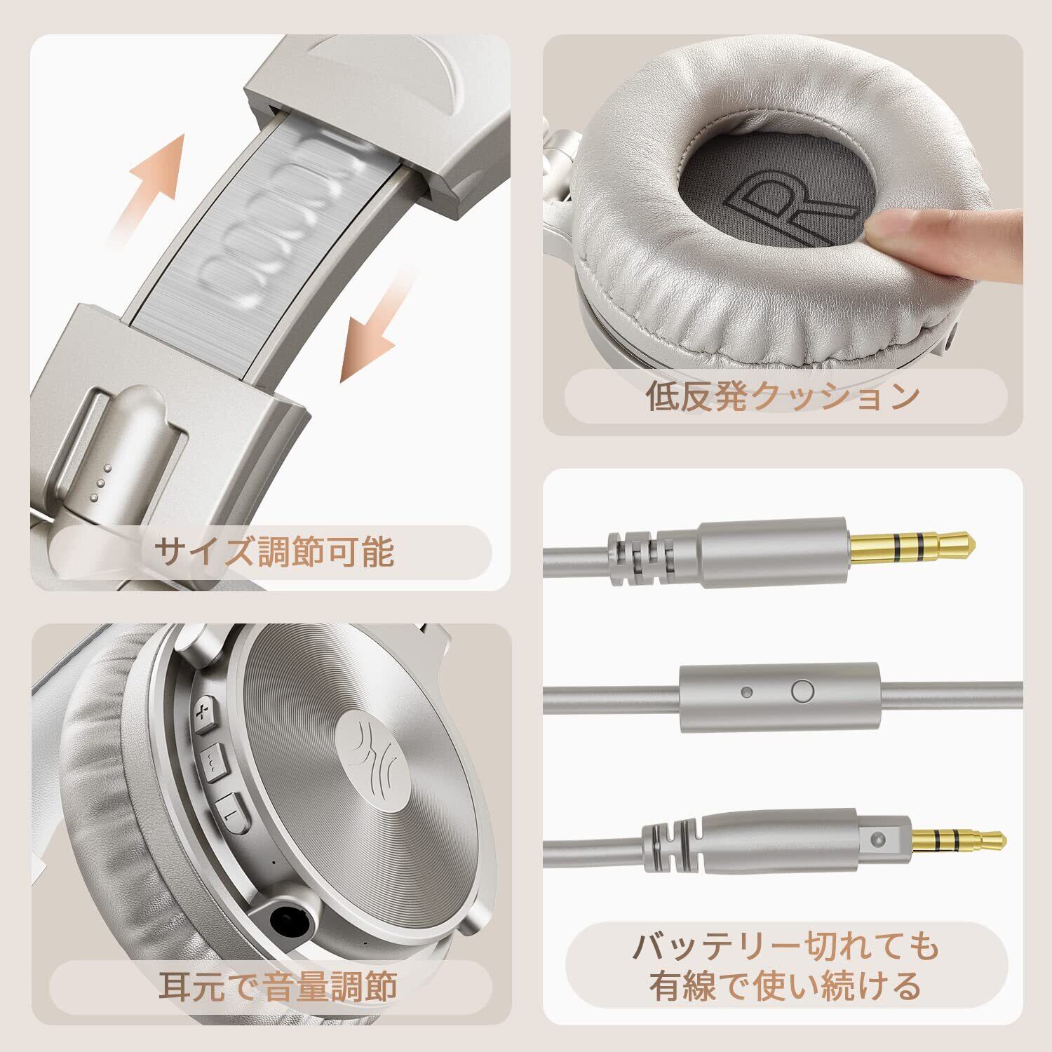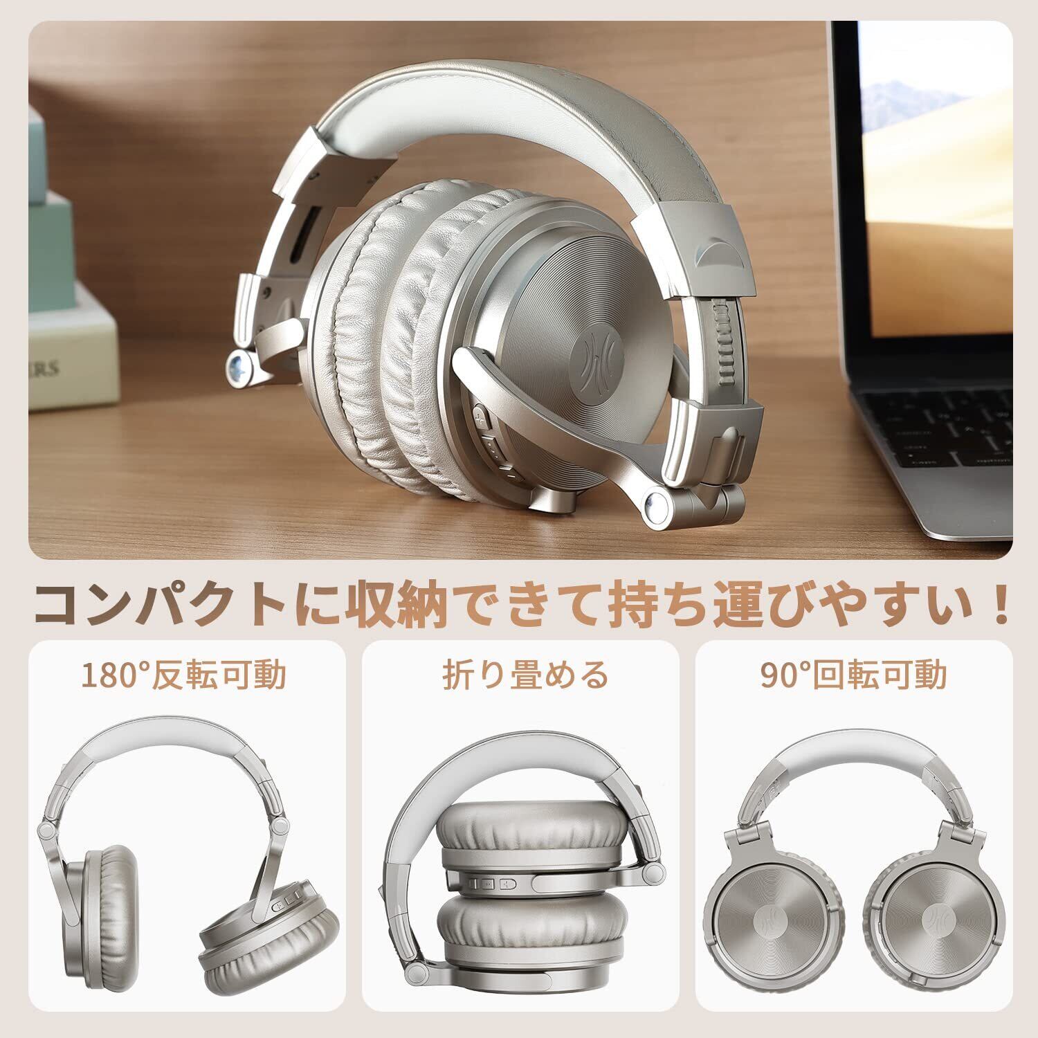 OneOdio ProC ワイヤレスヘッドホン ブルートゥース ヘッドフォン有線 無線 両用 低音強化 Bluetooth 5.2 AAC対応 110時間再生 マイク内蔵