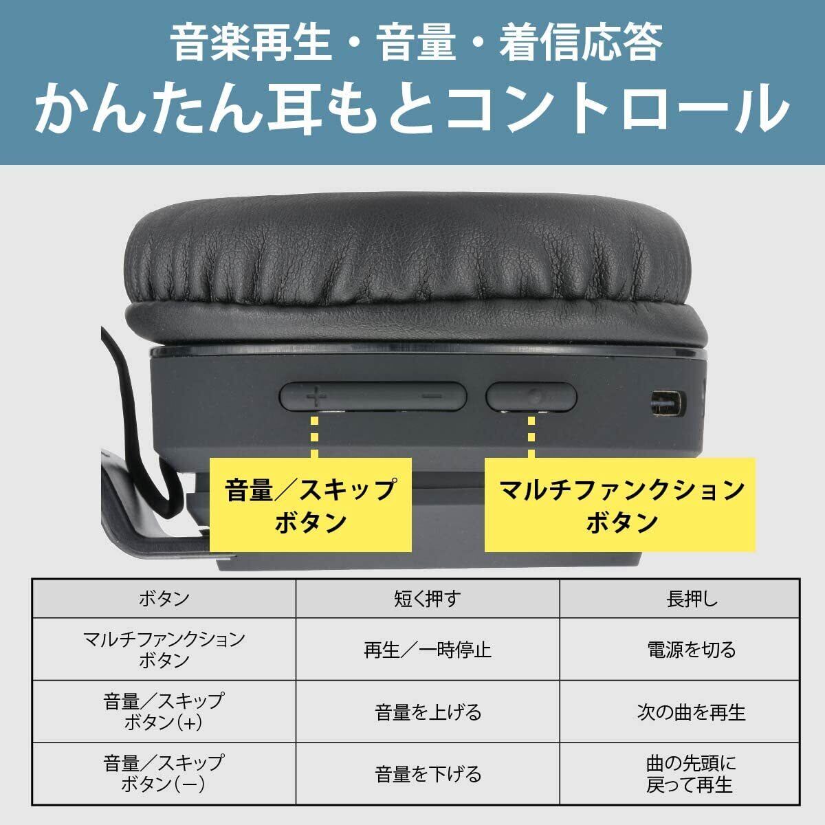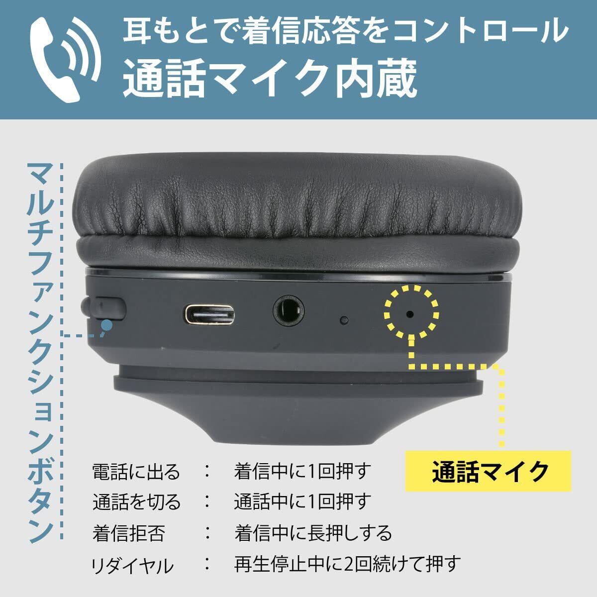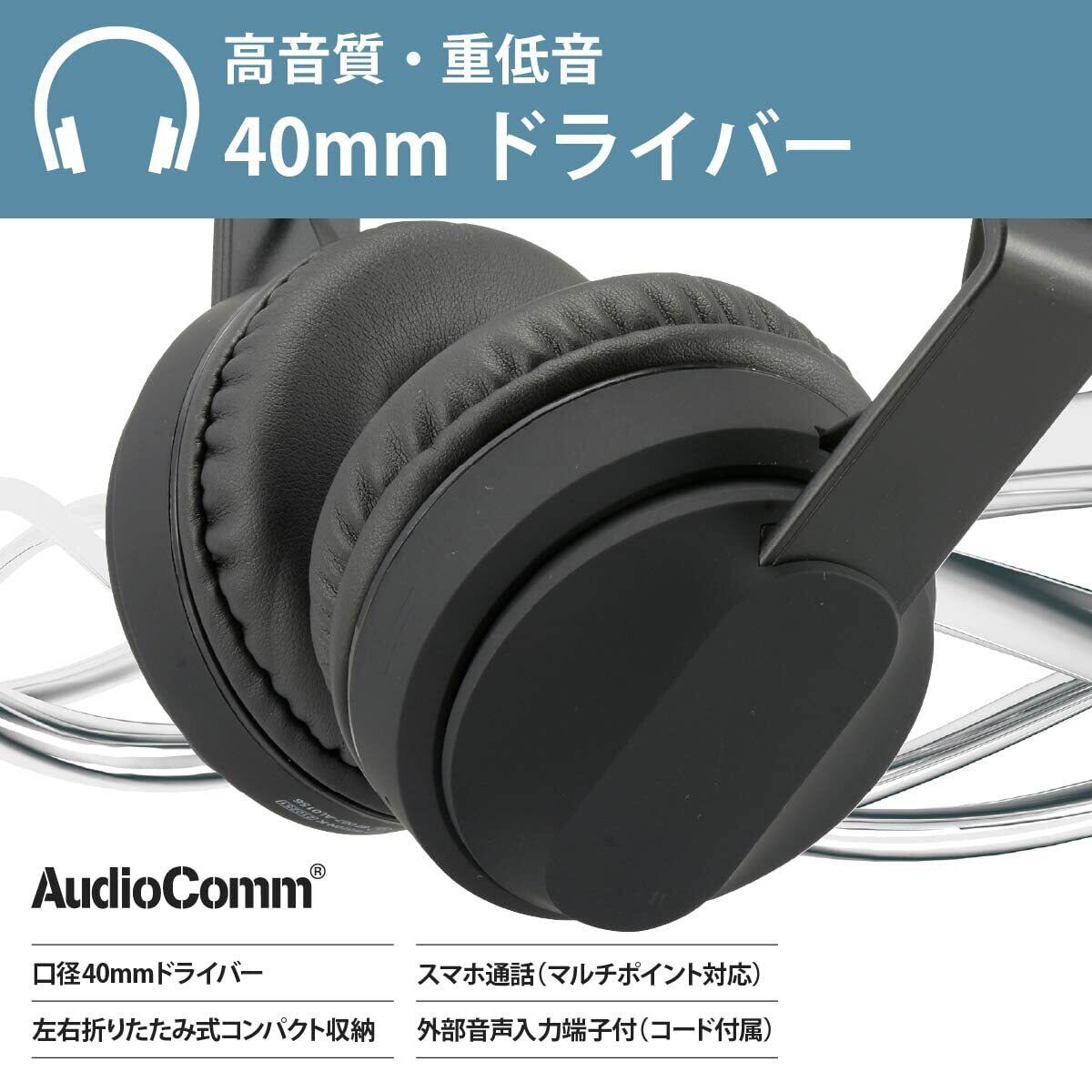 オーム電機AudioComm ワイヤレスヘッドホン ヘッドフォン Bluetooth 無線 マイク付き スマホ通話 着信応答 ブラック HP-W310N-K 03-2886 OHM
