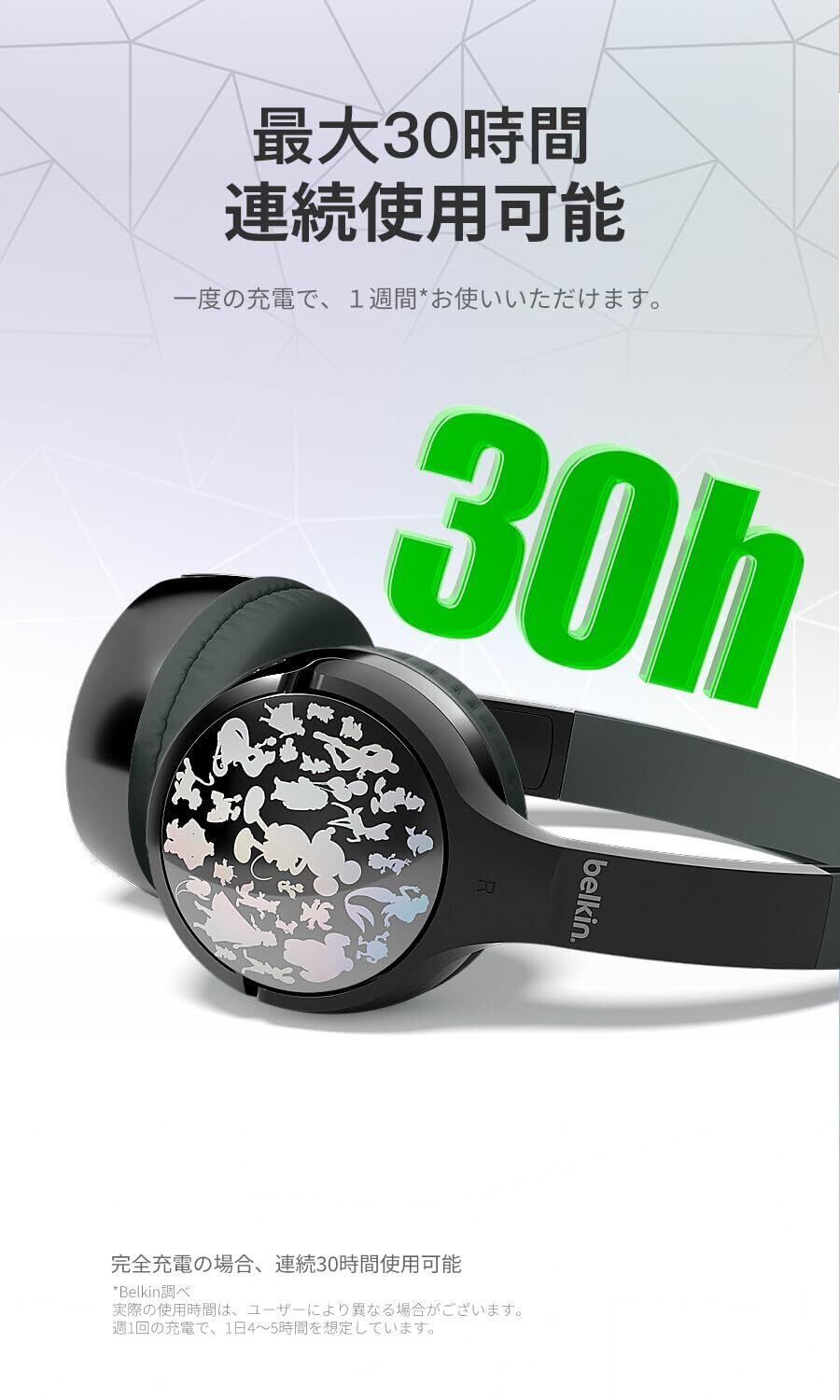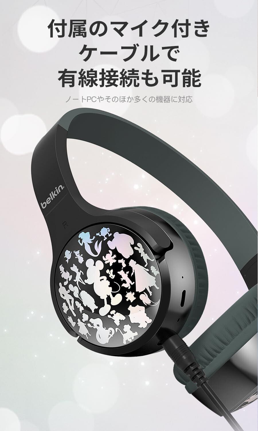 【ディズニー創立100周年】Belkin 子供用 ワイヤレスヘッドフォン ヘッドセット 通話マイク搭載 音量制限機能 ボイスチャット マイク付き 最大30時間連続再生 Bluetooth5.0 防水対応 有線接続にも対応(3.5mmオーディオケーブル付属) SOUNDFORM Mini ホワイト AUD002qcSL-DY | kki
