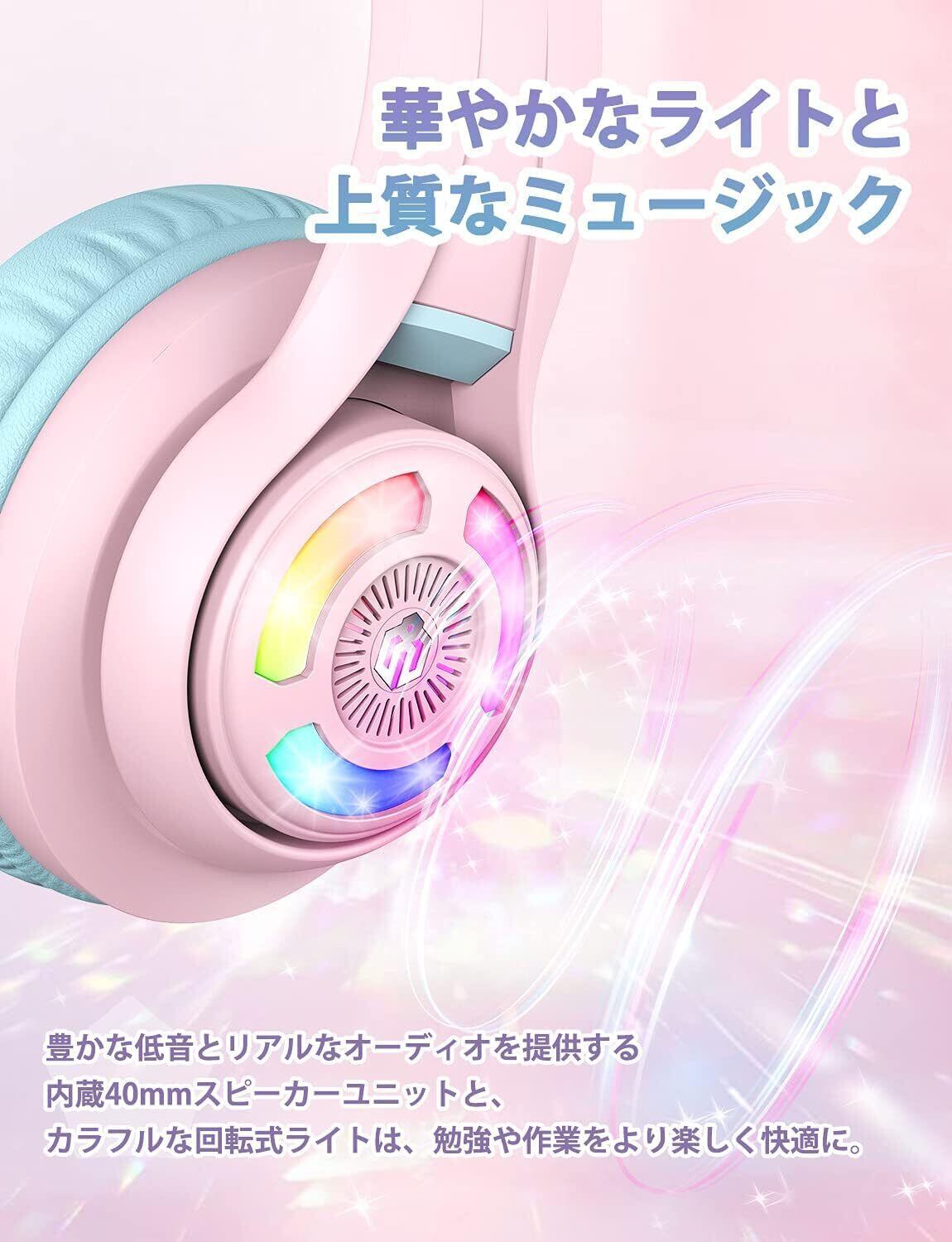 iClever 子供用ヘッドホン Bluetoothヘッドフォン 猫耳LEDライトアップワイヤレスキッズヘッドフォン 音量制限付き(74/85 dBA) 45Hプレイタイム マイク付き 学校/タブレット/PC用 BTH13 ピンク | kki