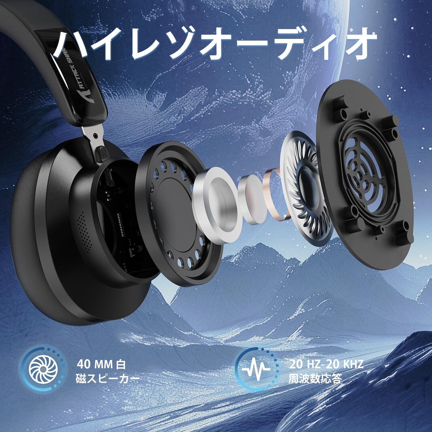 ATTACK SHARK G500 BT5.3/ワイヤレス接続 ヘッドホン オーバーイヤーヘッドフォン Bluetooth 最大30時間音楽時間 アクティブノイズキャンセリング 遮音イヤホン (NAC Bluetoothモード) ハイレゾ対応(3.5mm有線) 立体音響 【技適獲得:219-249399】 黒 | kki