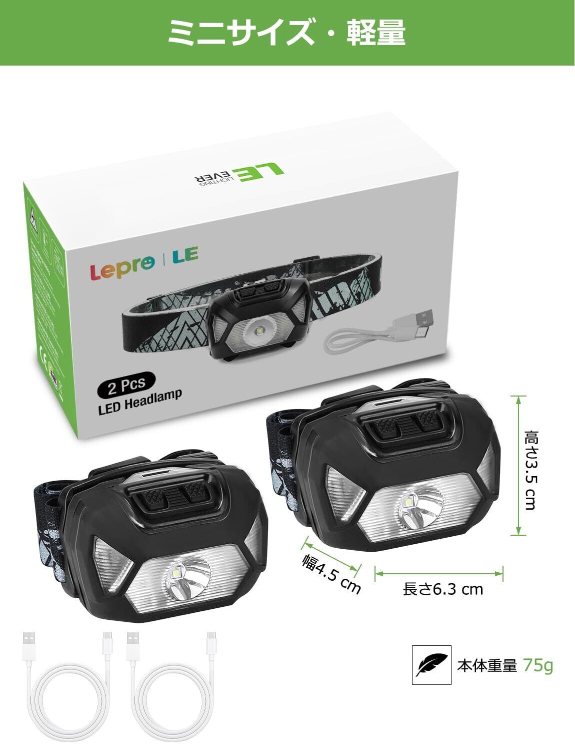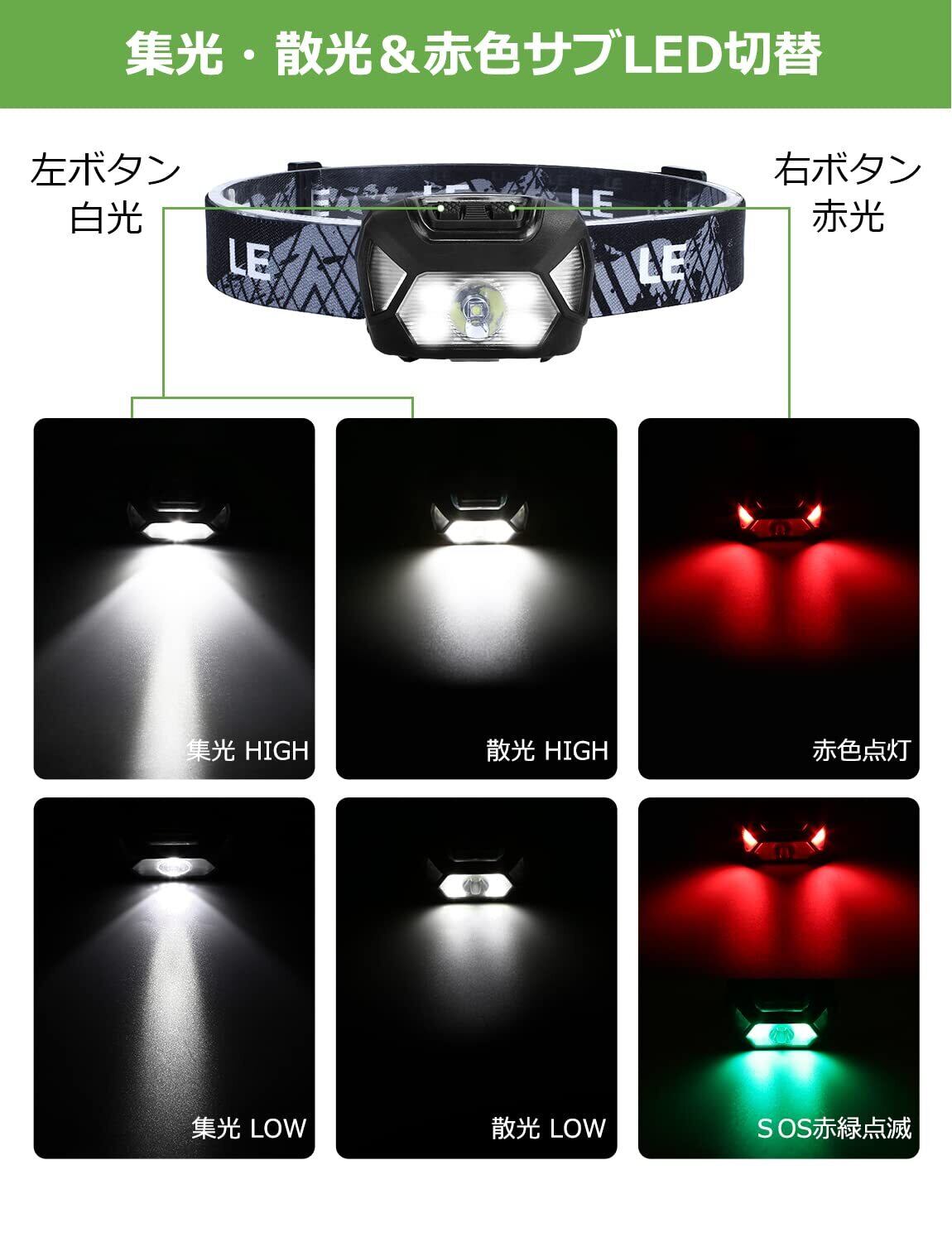 ヘッドライト 充電式 USB-C ledヘッドライト 高輝度 LED ヘッドランプ 2個セット 【集光・散光切替/ 明るさ300ルーメン/ 実用点灯4~30時間/ IPX4防水/Type-cケーブル付き】 赤色サブライト搭載 夜釣り 最適 登山 キャンプ 散歩 作業 釣り アウトドア 災害 停電用 小型 軽量 ヘッド ライト | kki