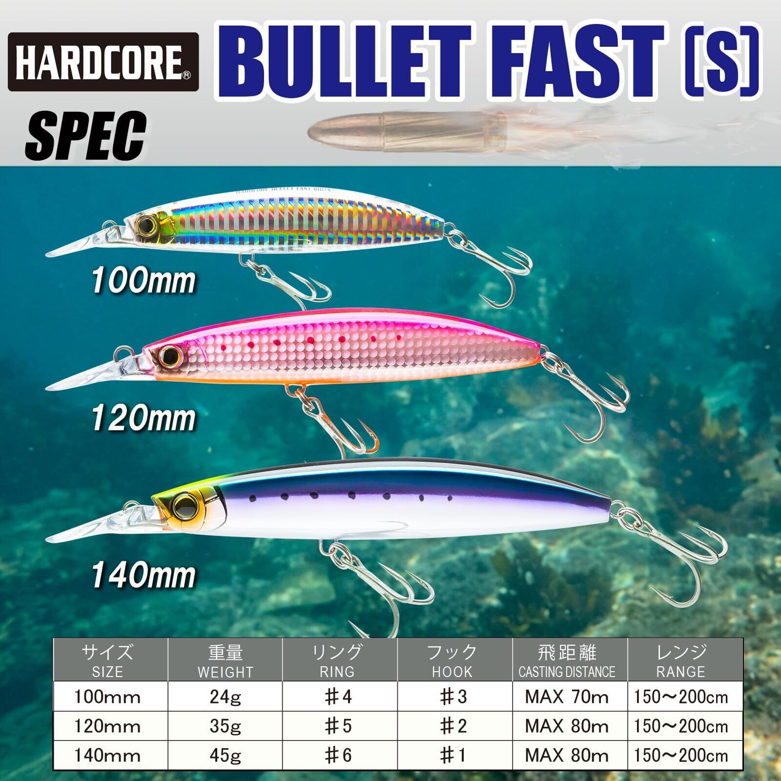 DUEL(デュエル) ハードコア バレットファスト シンキングミノー 遠投 青物・サワラ