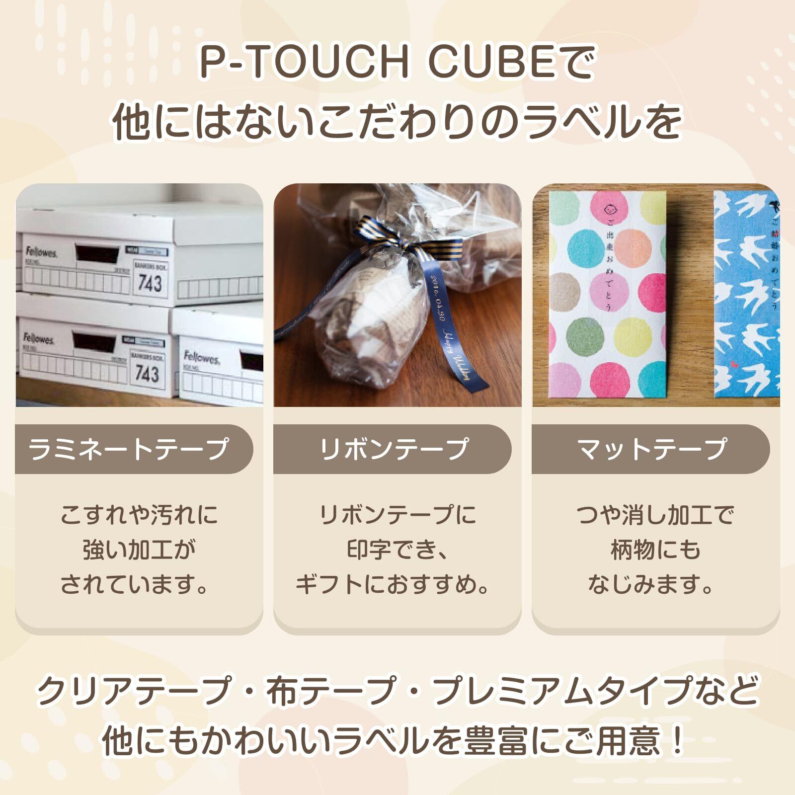 ブラザー ラベルライター ピータッチキューブ ラテ PT-P300BTLT (スマホ専用/3.5mm~12mm幅/TZeテープ/サンプルテープ2本付き) 【日本子育て支援大賞2025】
