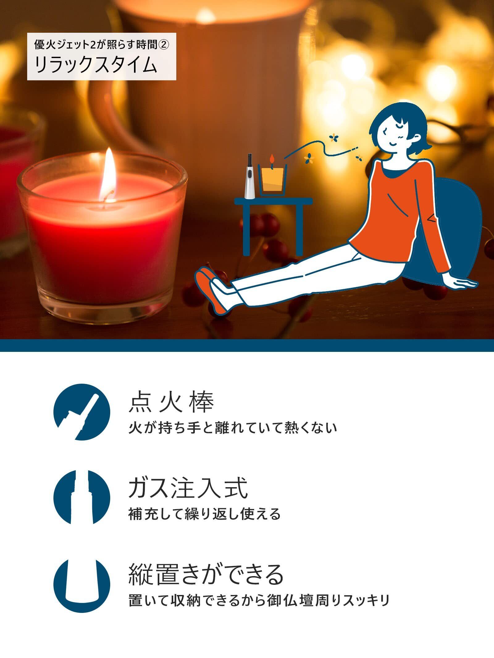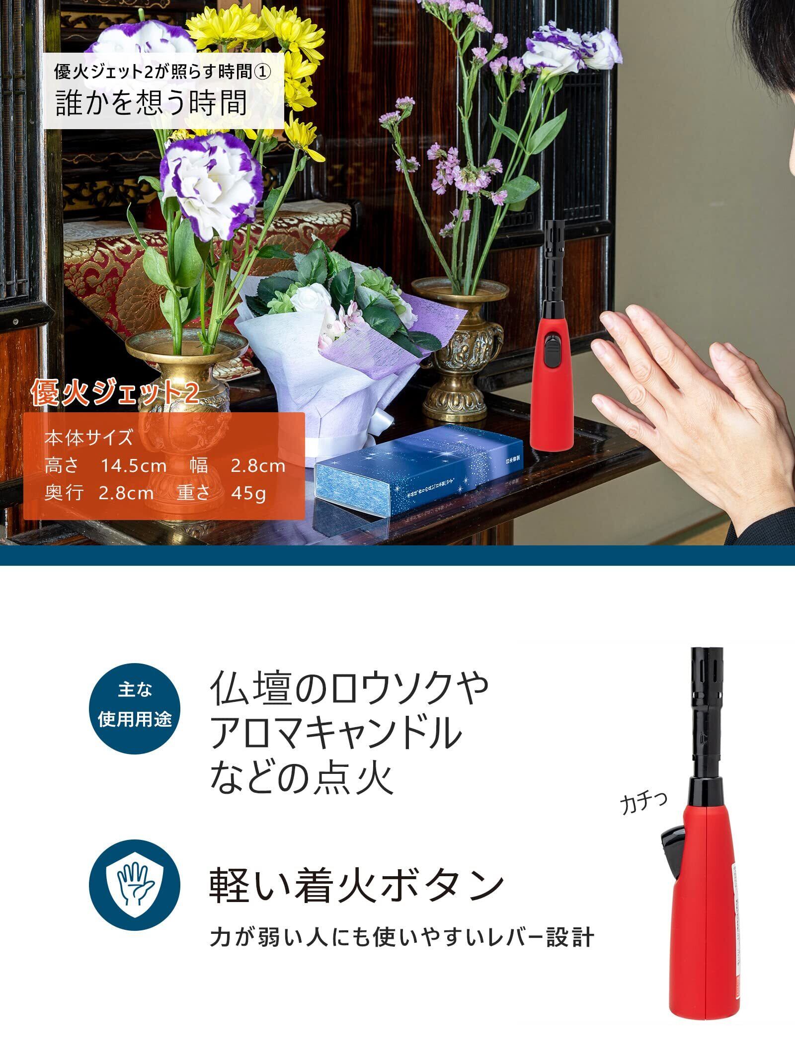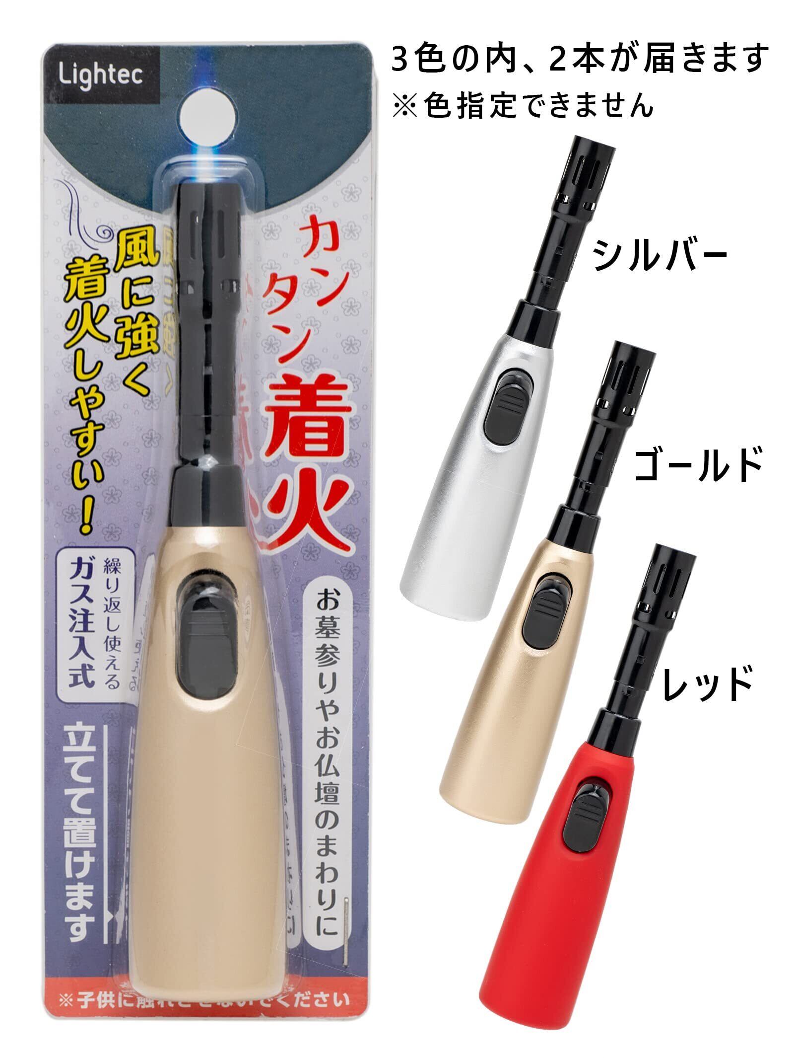 lightec(ライテック) 点火棒 ガスライター 注入式 優火ジェット2 2本セット 色指定不可 お墓参り 仏壇 向け