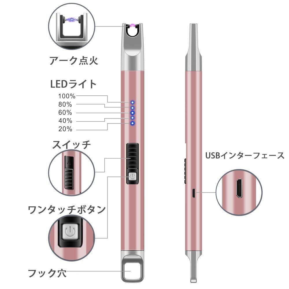 プラズマライター 電子ライター 点火 電気 USB 電量表示 充電式 火起こし 無炎 防風 スリム ろうそく BBQ お墓参り アウトドア用ライター