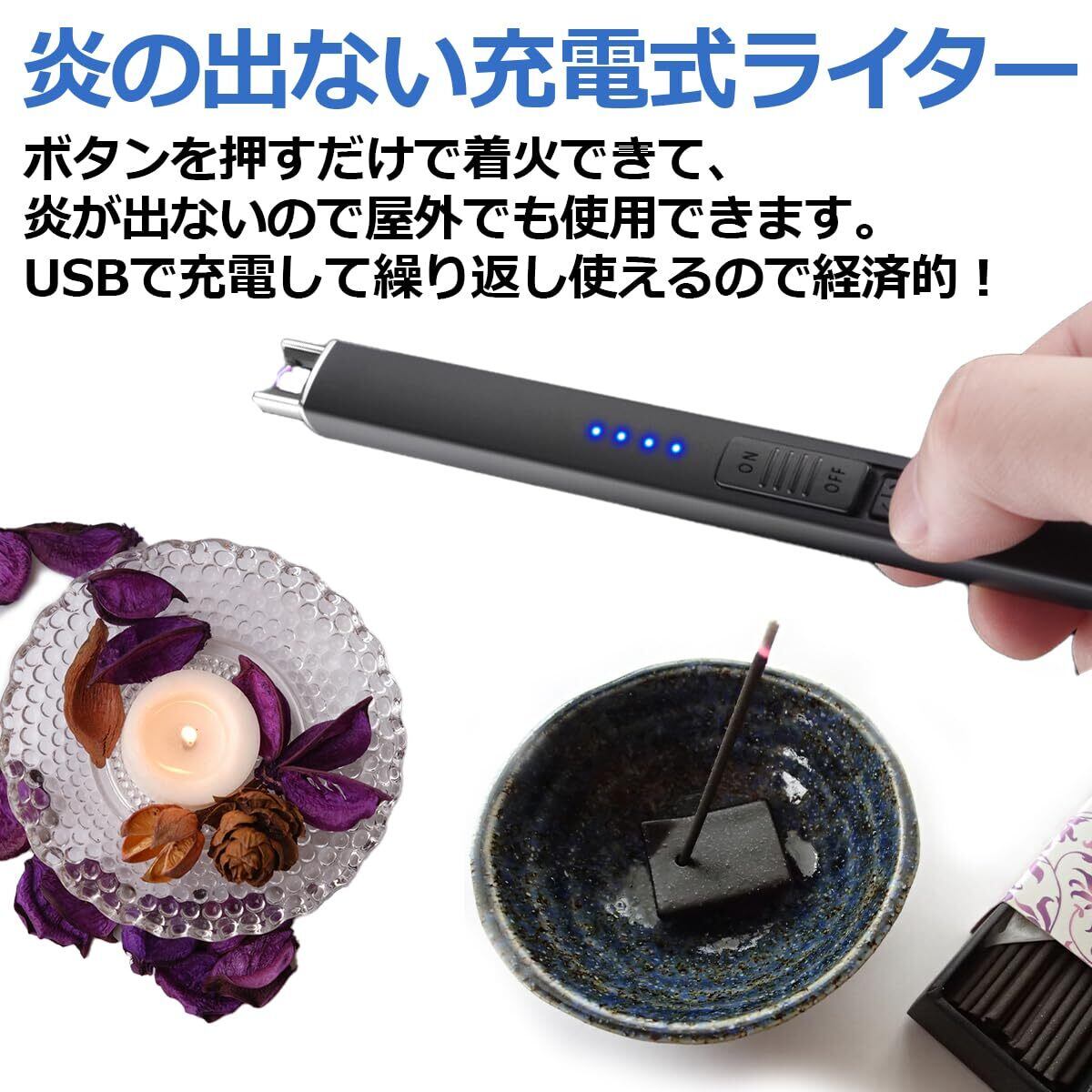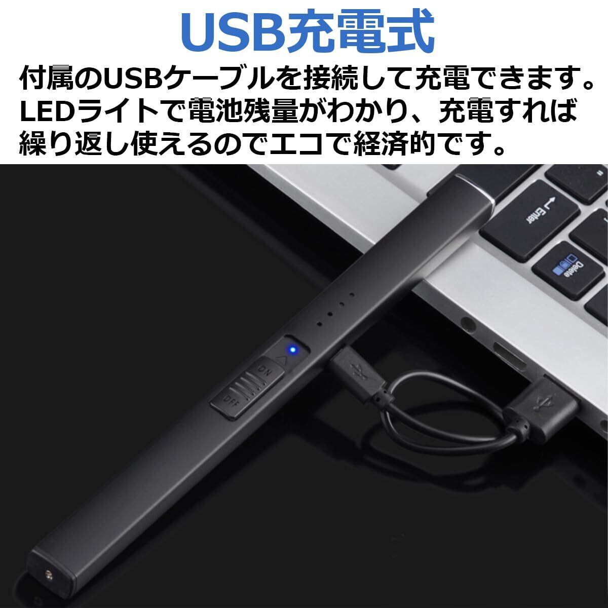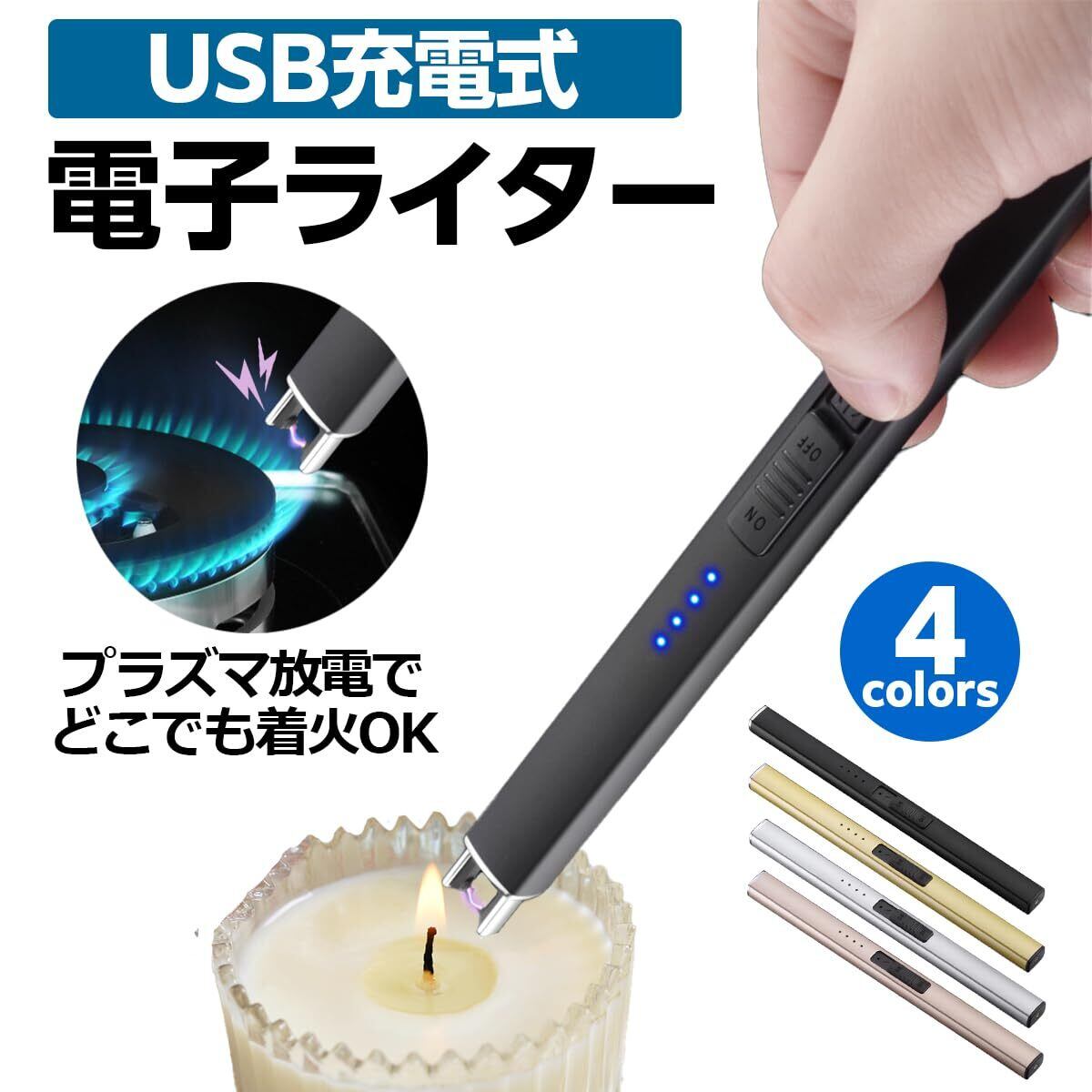 USK STORE 電子ライター USB 充電式 プラズマライター usb充電式 キャンドル 点火用 アロマキャンドル BBQ ローソク 線香 (ブラック)