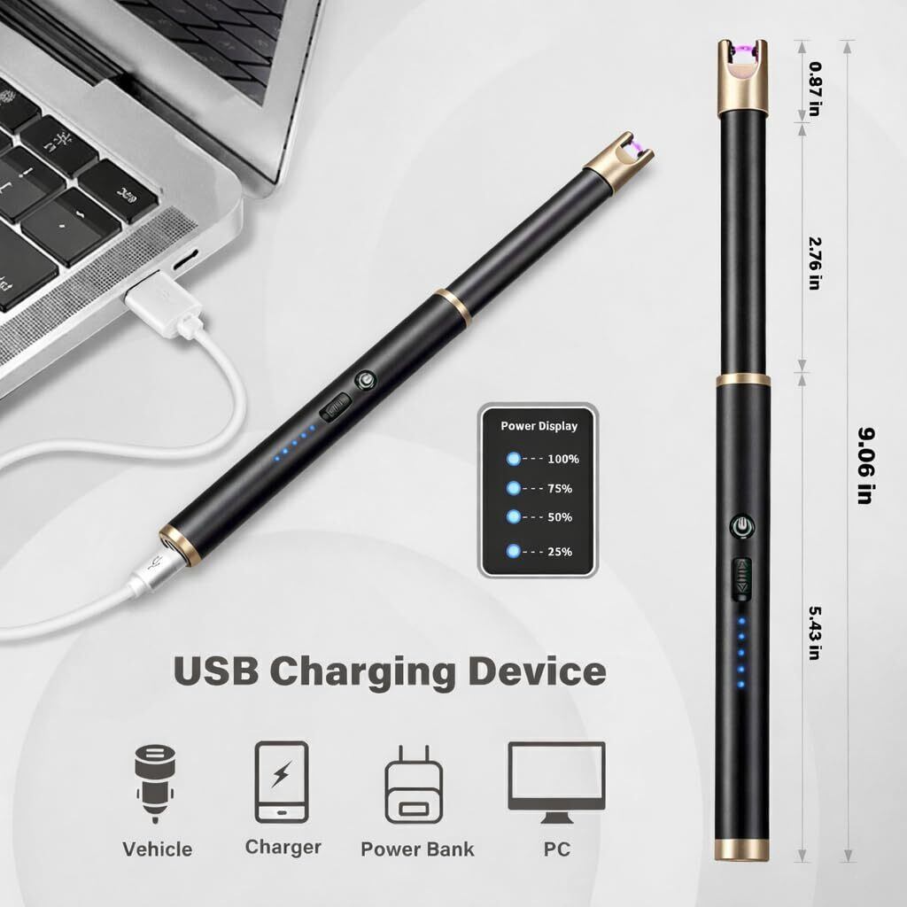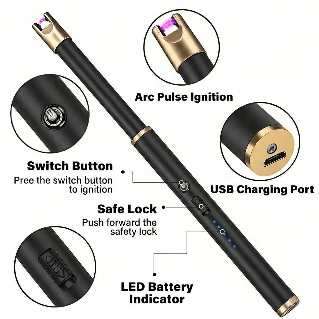 Navpeakキャンドルライターロングネック防風充電可能アークライターキャンドルガスコンロ暖炉グリルキッチングリル用 (ゴールド)