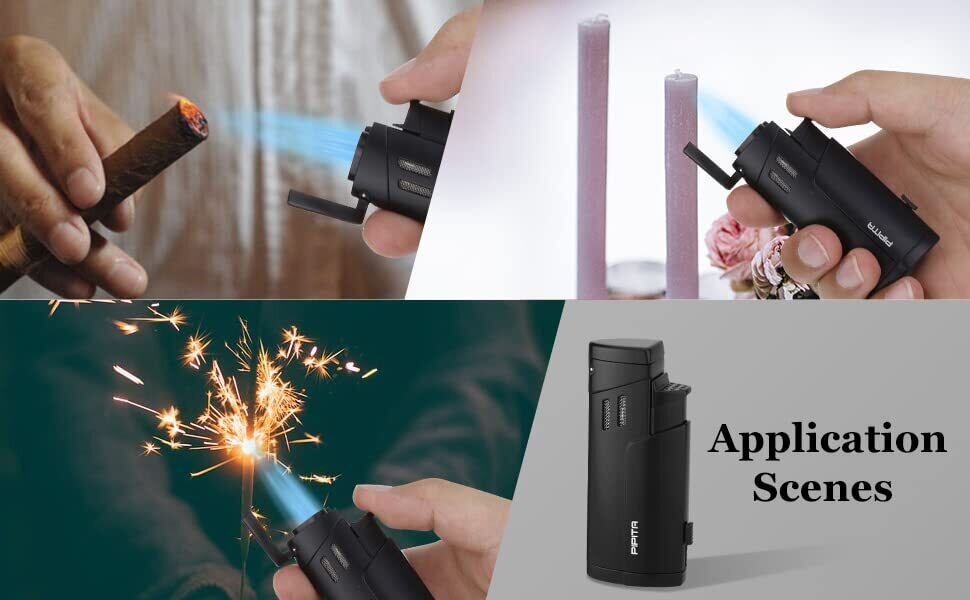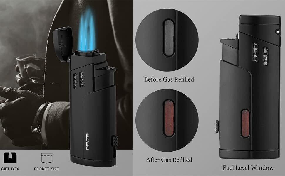 【高い品質】PIPITA トーチ ライター 充填式 ジェットライター 防風 直噴ターボライター ガス窓变色デザイン アウトドアトーチ キャンプ 火起こし着火用ガスライター(ガスなし)
