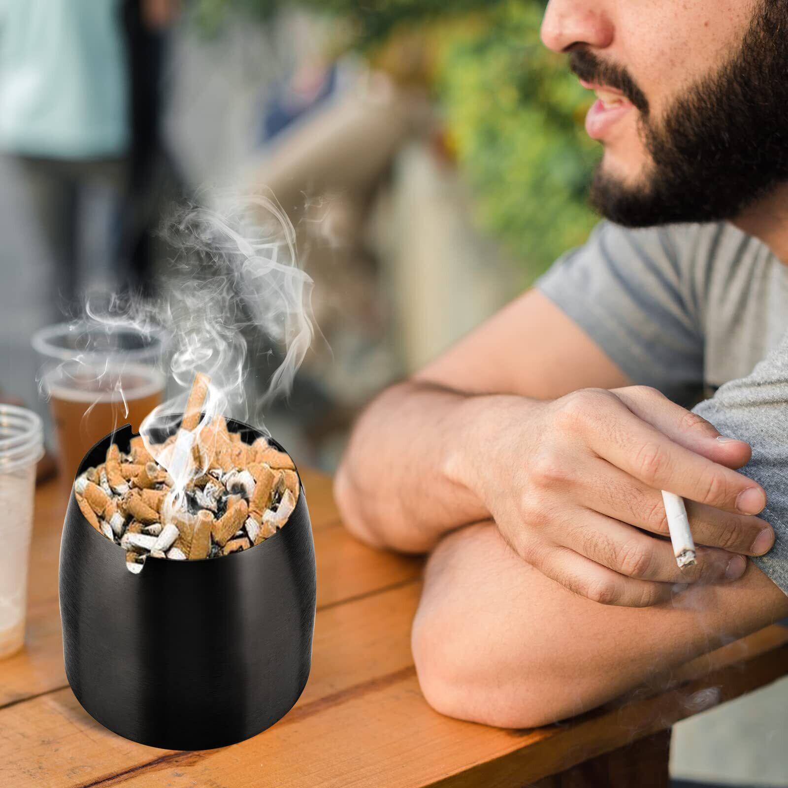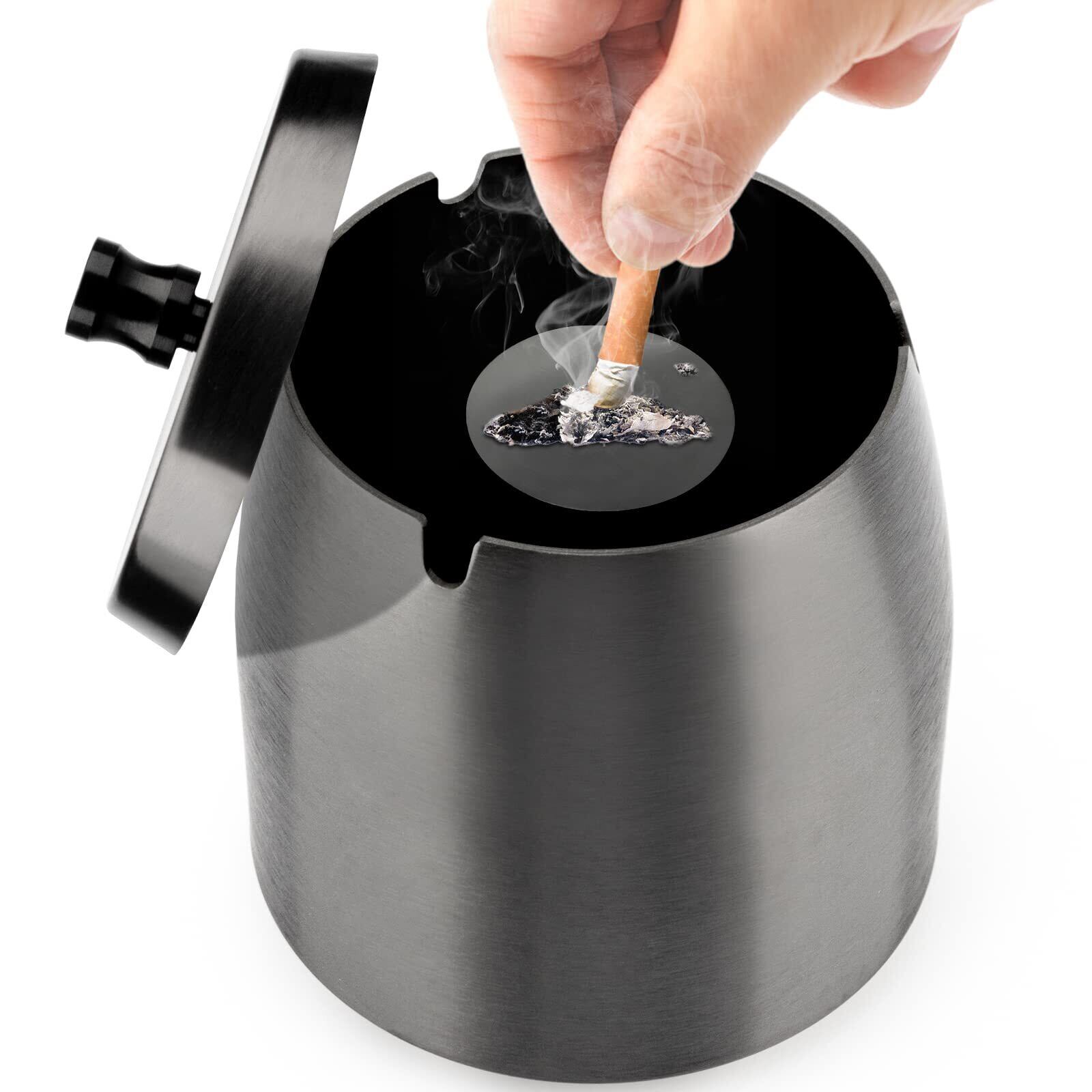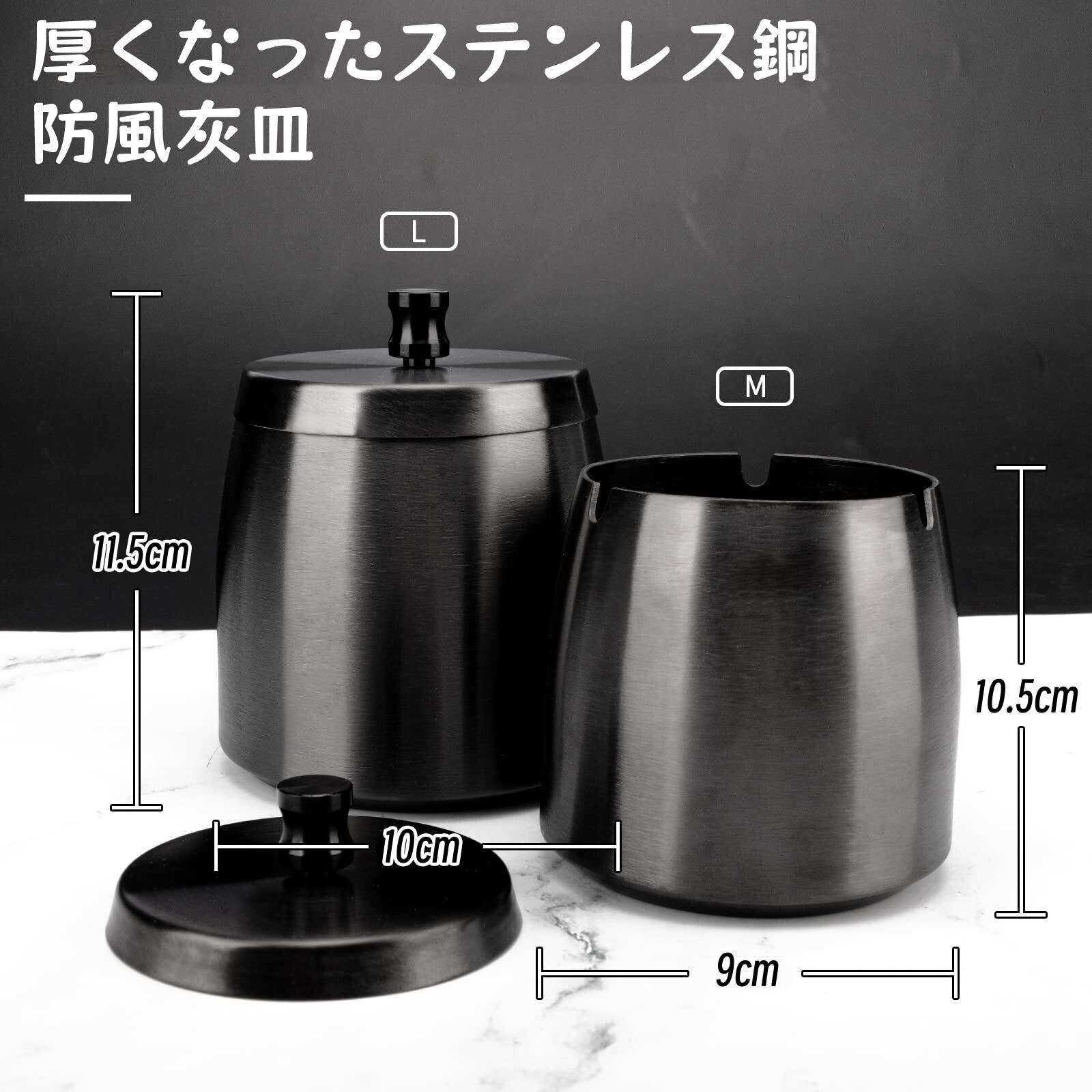 蓋付きステンレス鋼灰皿-滑り止めベース灰皿、ポータブル灰皿、屋内および屋外での使用に適しています、Black、M