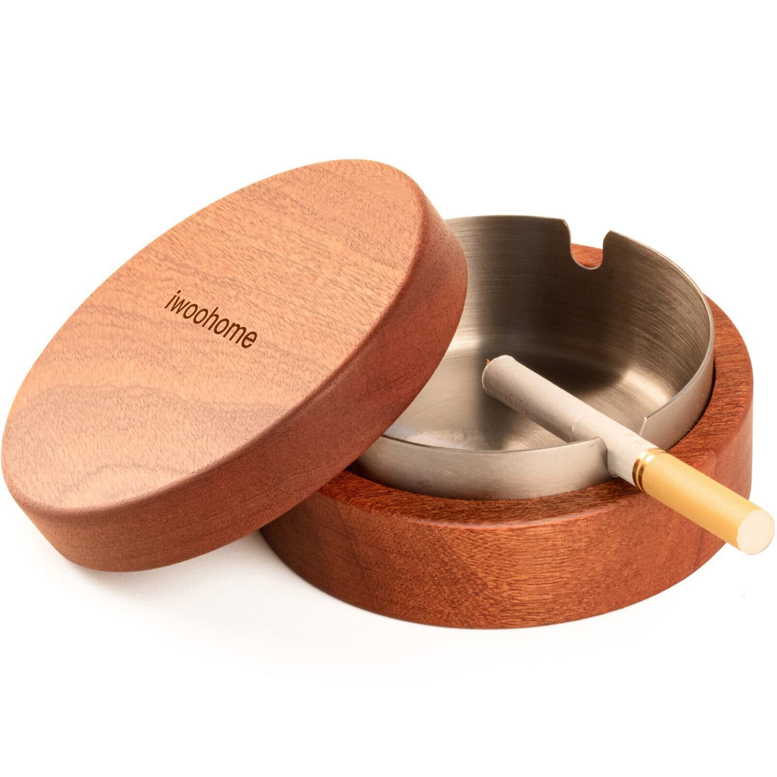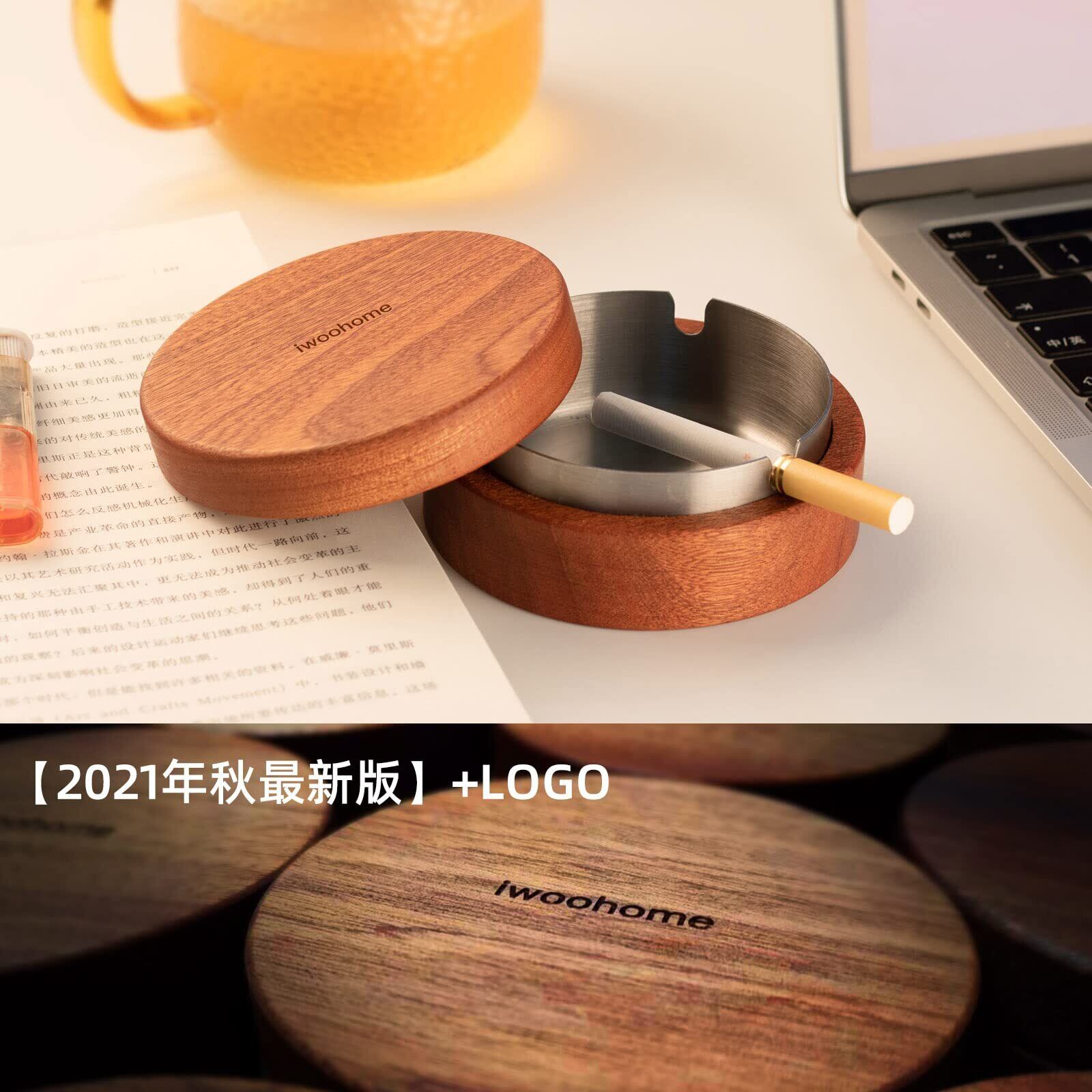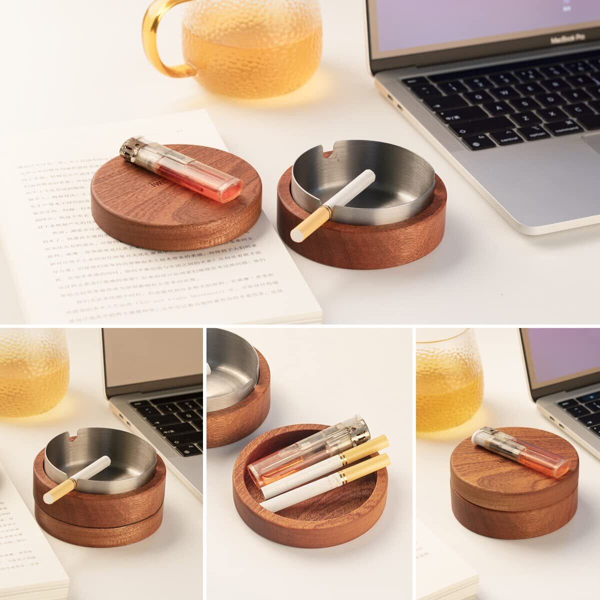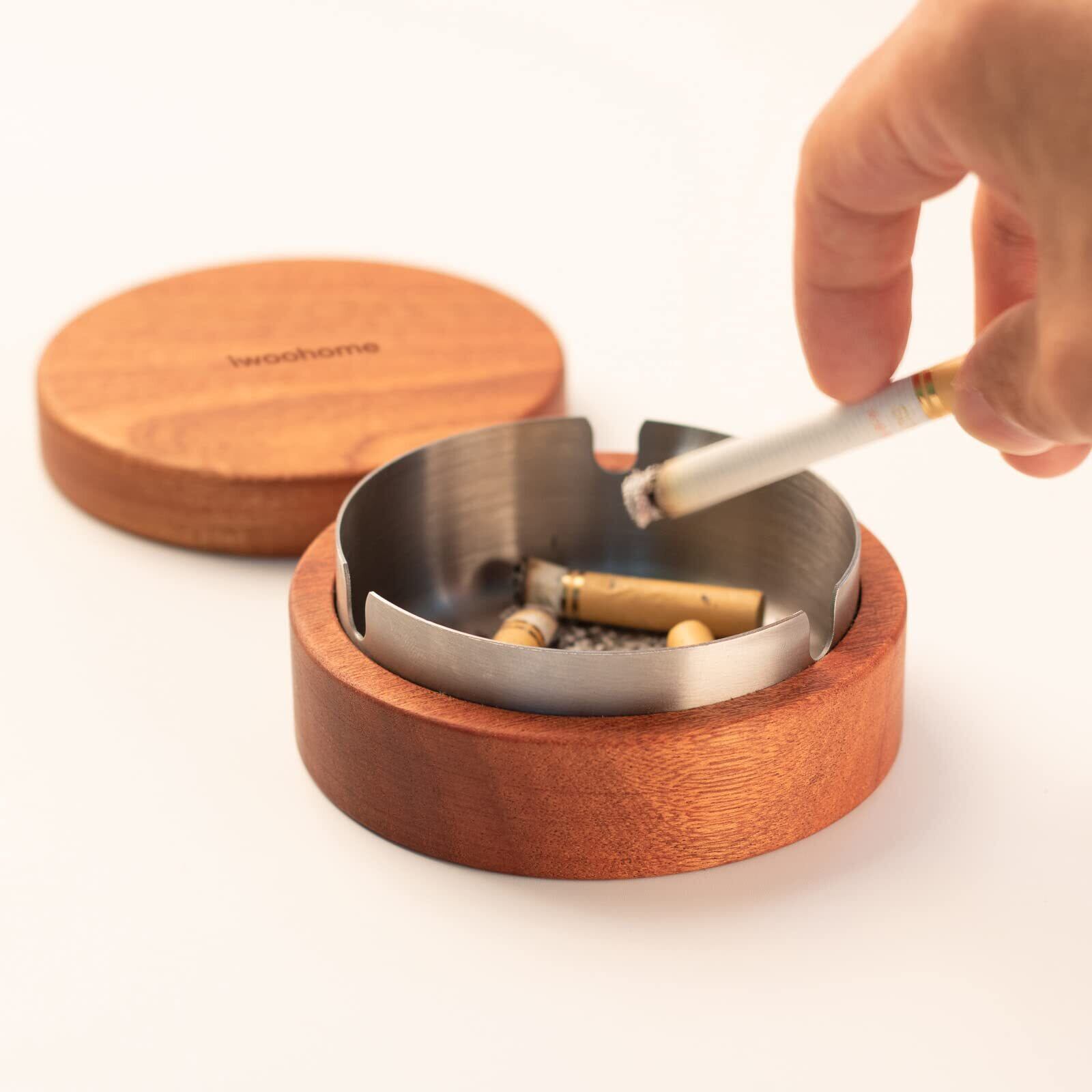 灰皿 ふた付き おしゃれ 木製×ステンレス の機能的融合 大容量 コンパクト 室内 卓上 屋外 灰皿 蓋つき