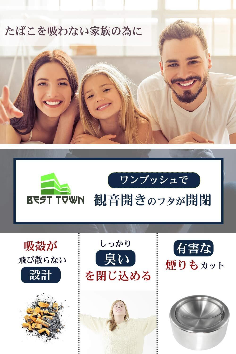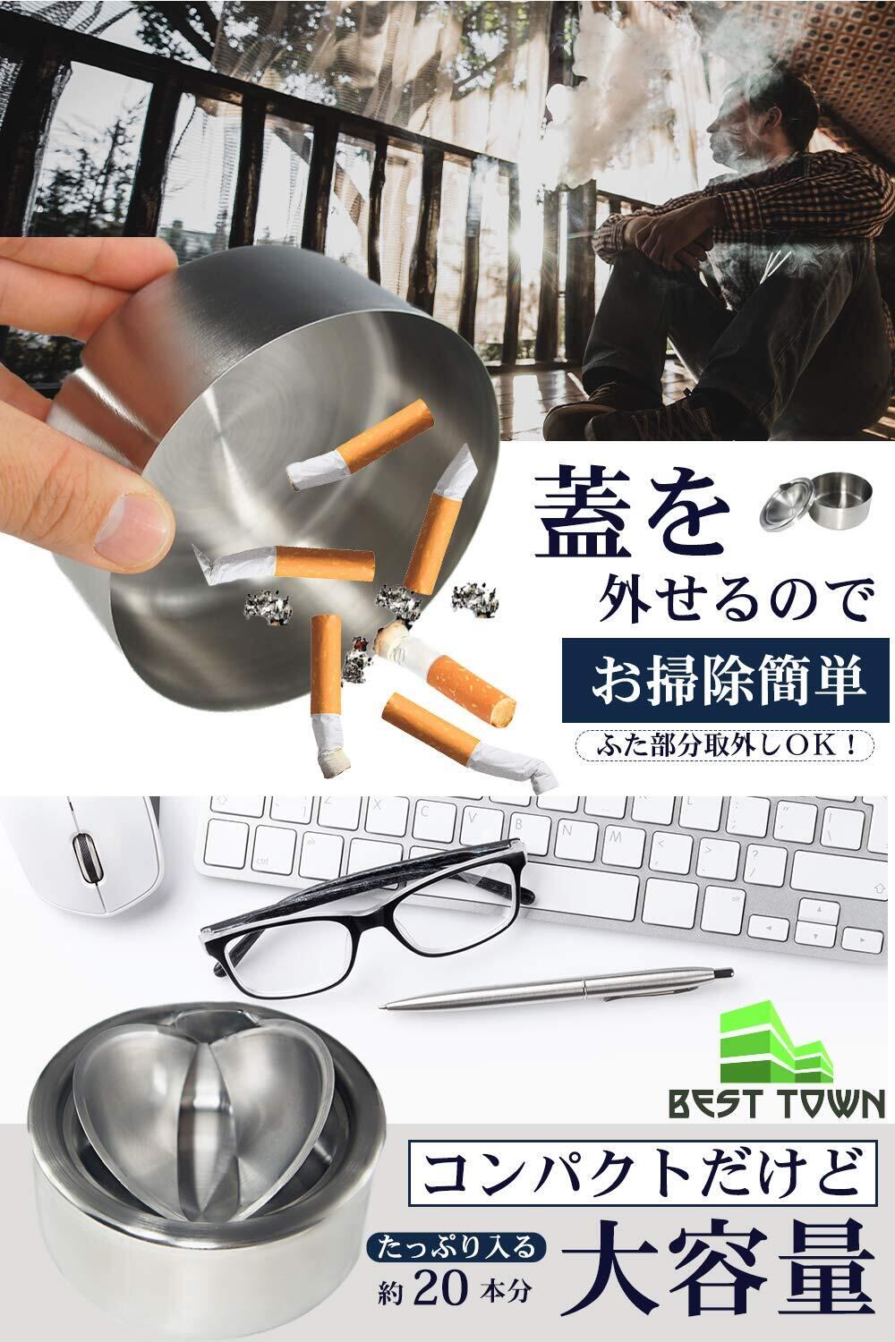 灰皿 ふた付き [ ステンレス製 1個or2個 ] おしゃれ 卓上 蓋つき灰皿 開閉タイプ 大容量 はいざら シルバー 屋内 屋外 兼用 煙を遮断 吸い殻入れ 【BEST TOWN】 (1個) | kki