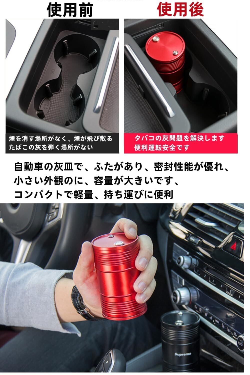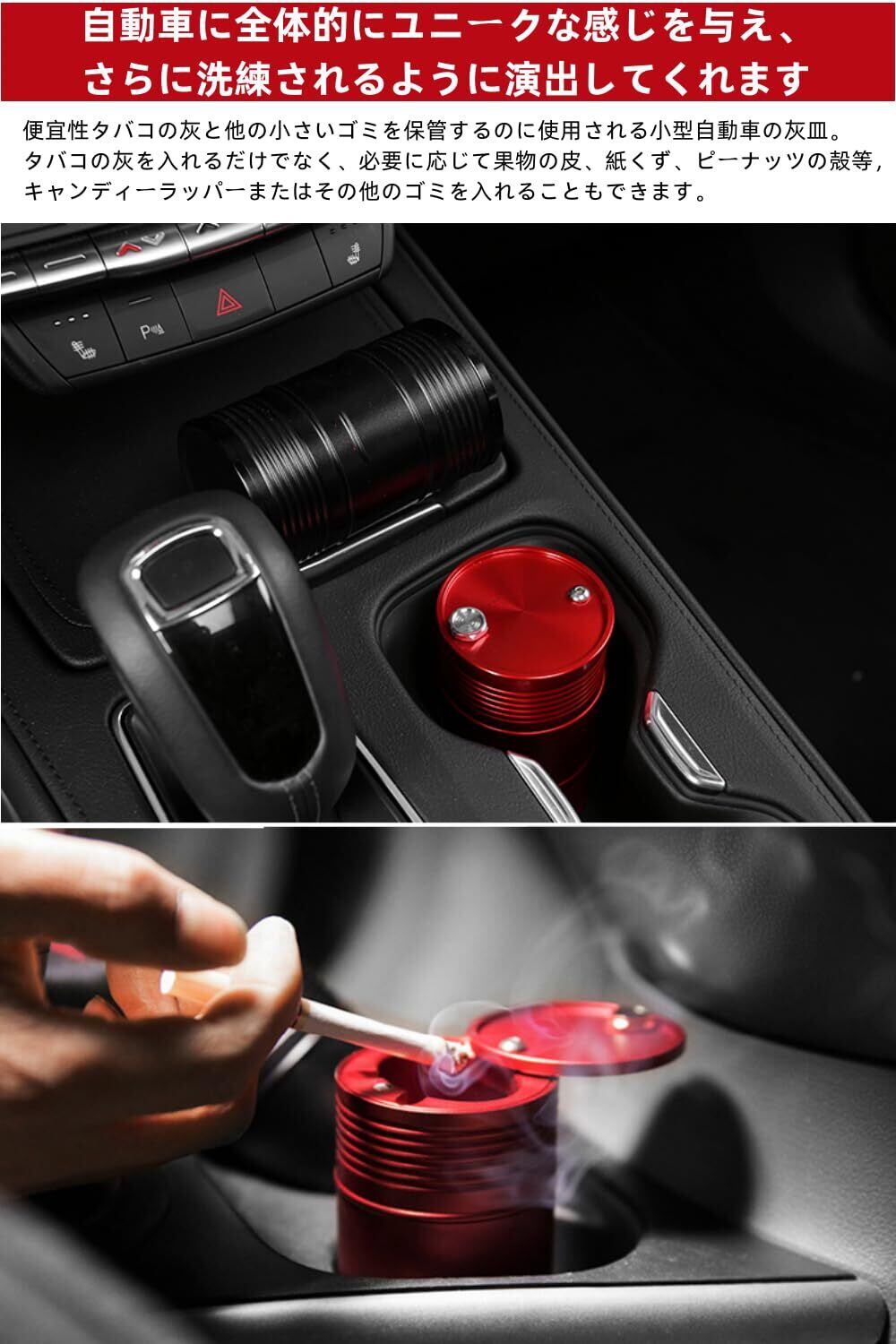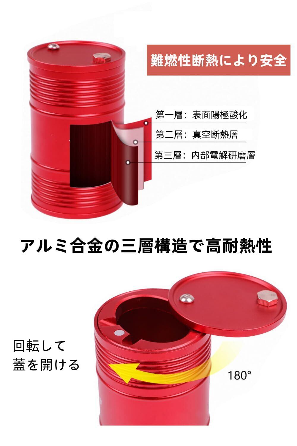 YFFSFDC 車用 灰皿 ドラム缶 携帯灰皿 蓋付き 大容量 スタンド灰皿 丸洗い可能 灰捨て簡単 車内用品 自動車用灰皿 (レッド)