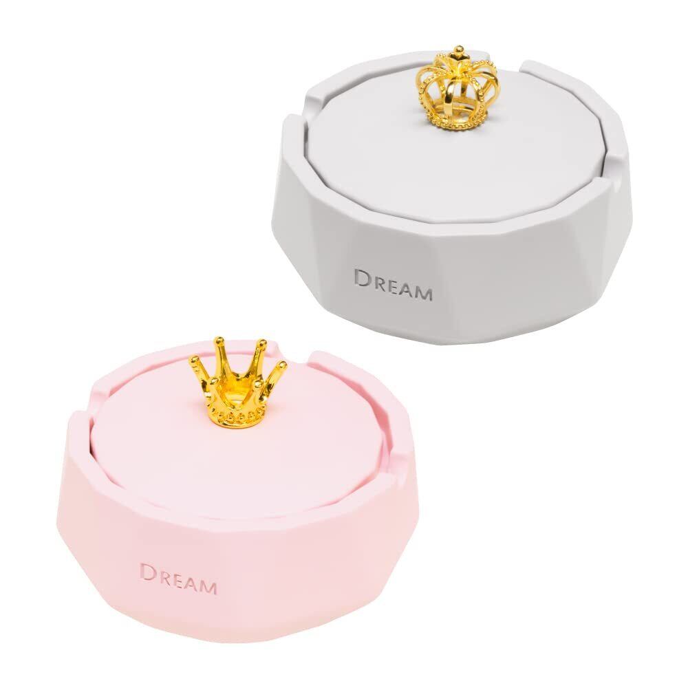 A-ITEM エーアイテム 王冠付灰皿 ピンク グレー トレイ 樹脂製灰皿 蓋付き 無煙 かわいい 卓上灰皿 灰皿 王冠 灰皿ホルダー シンプル 陶磁器 (グレー)